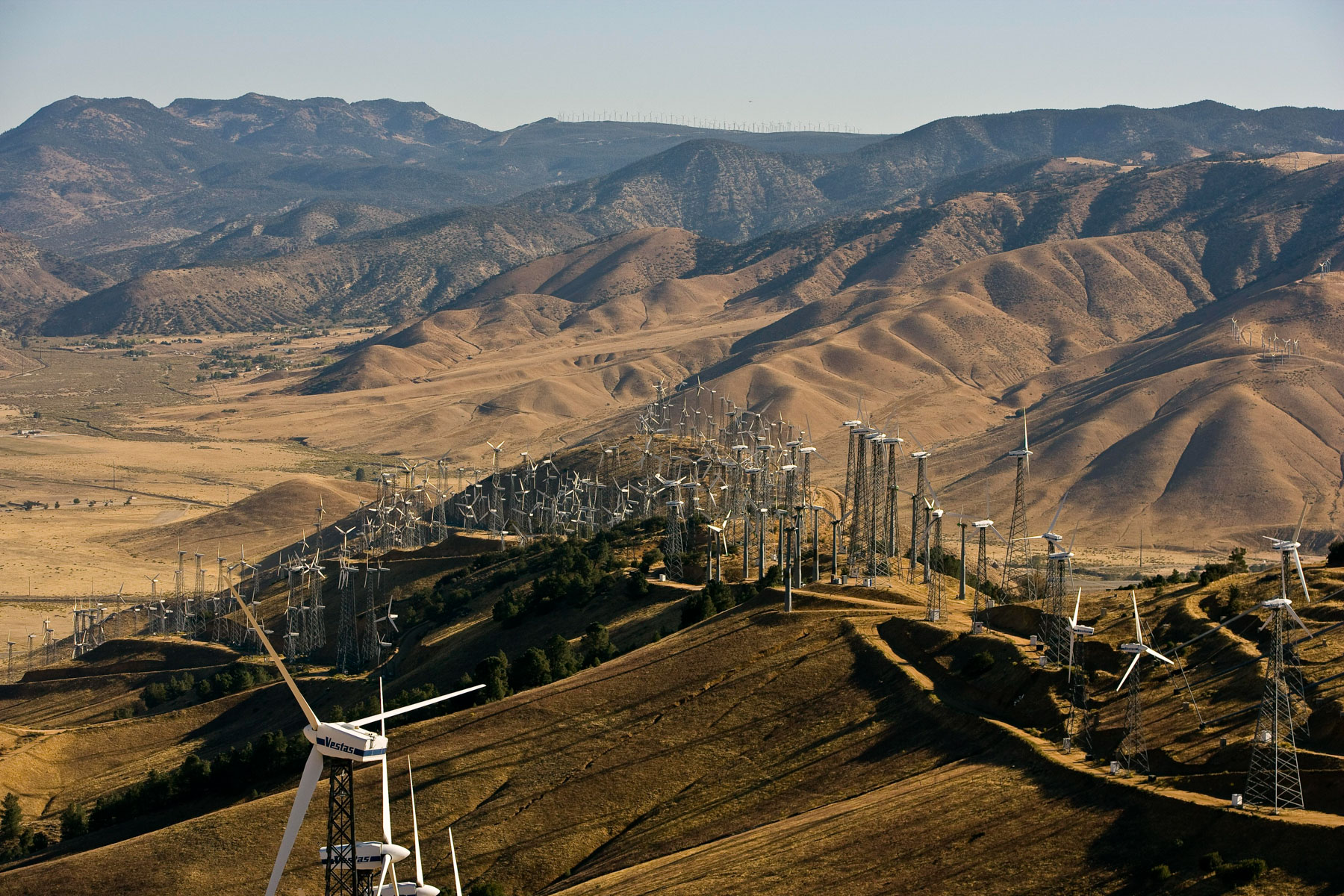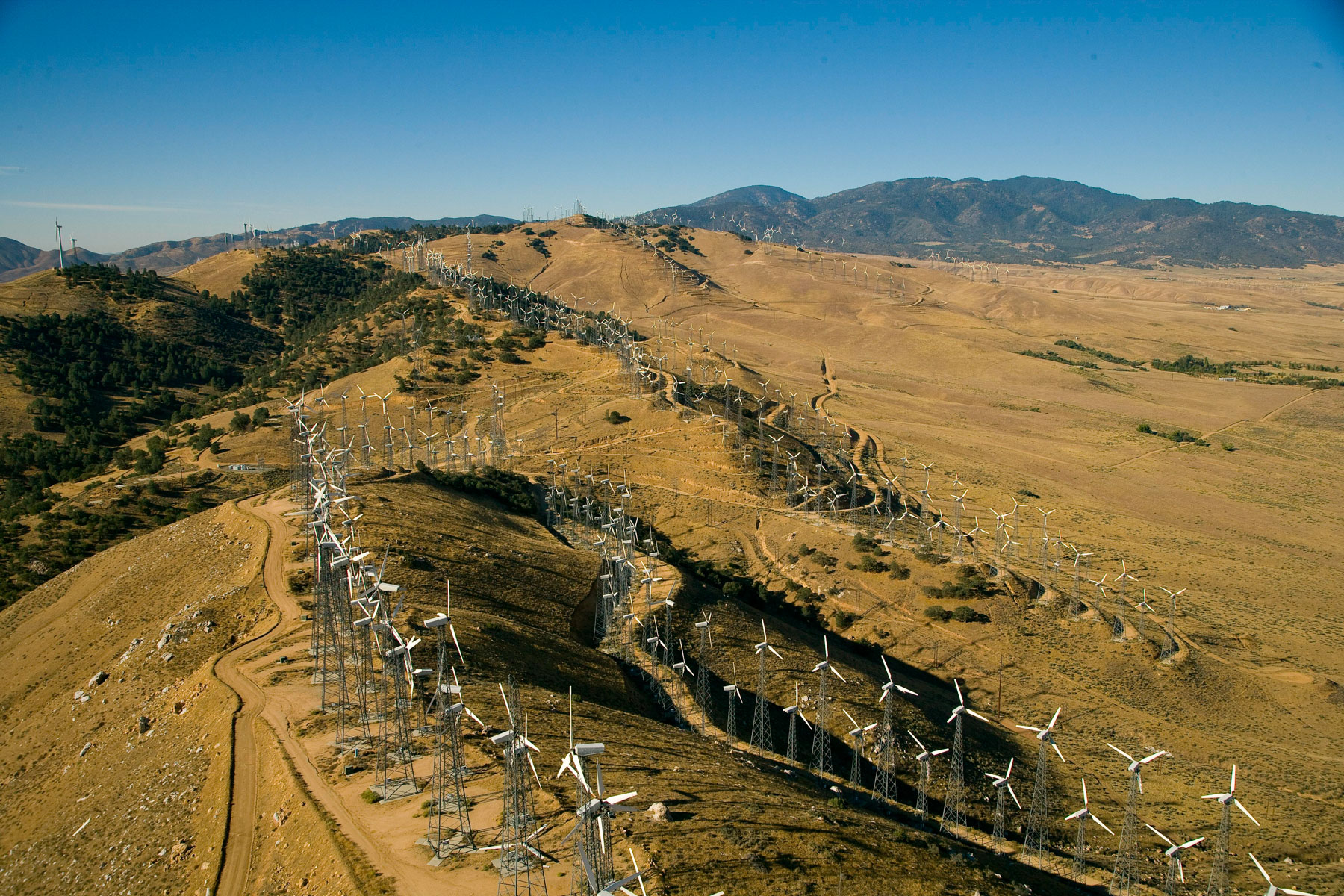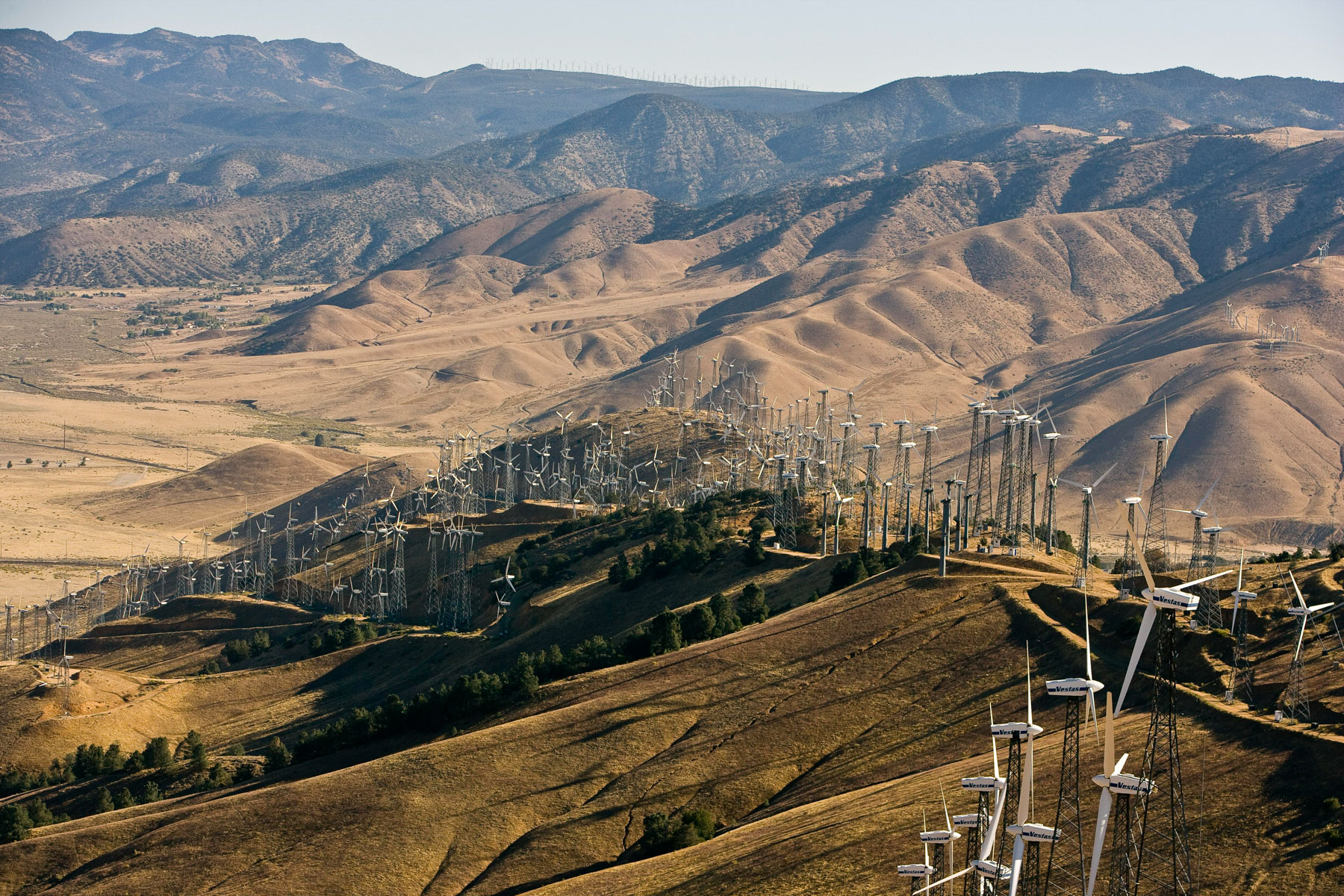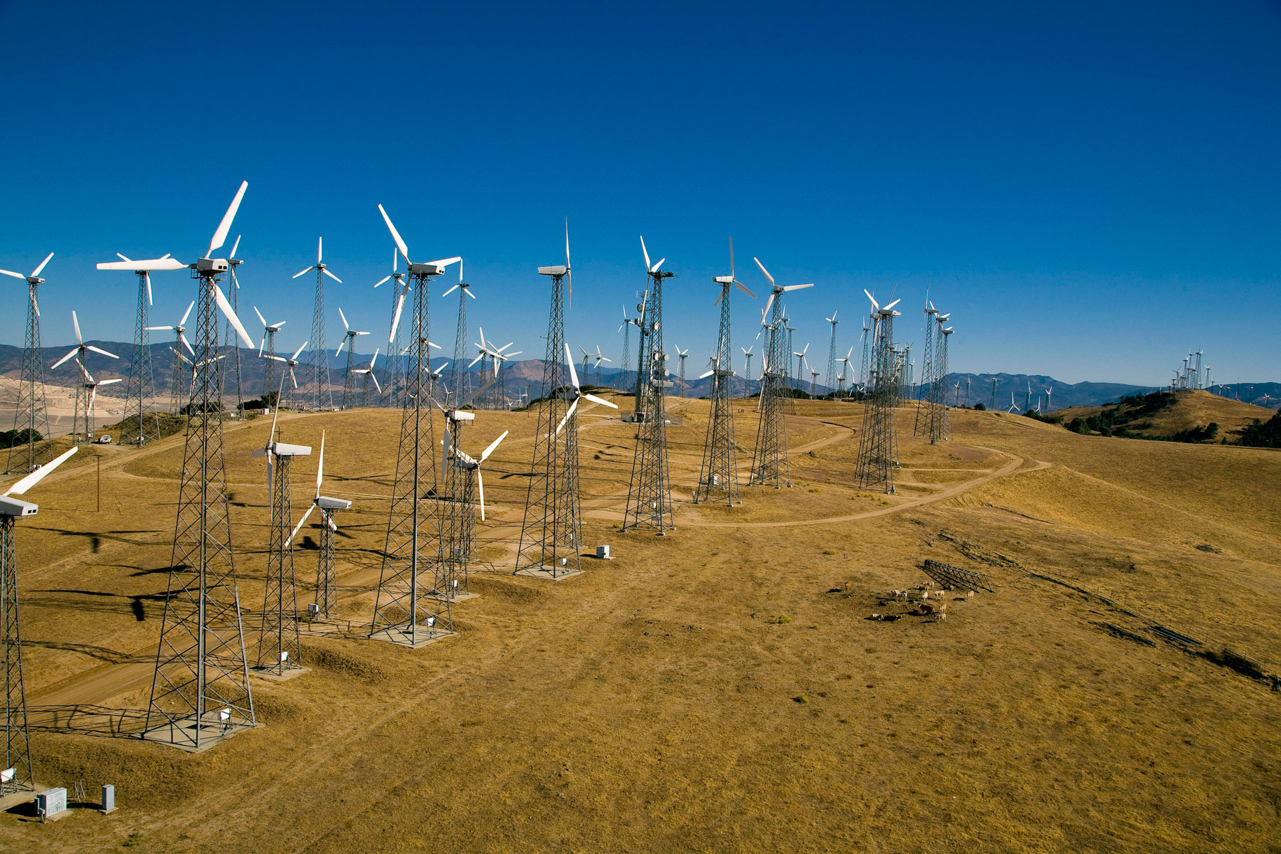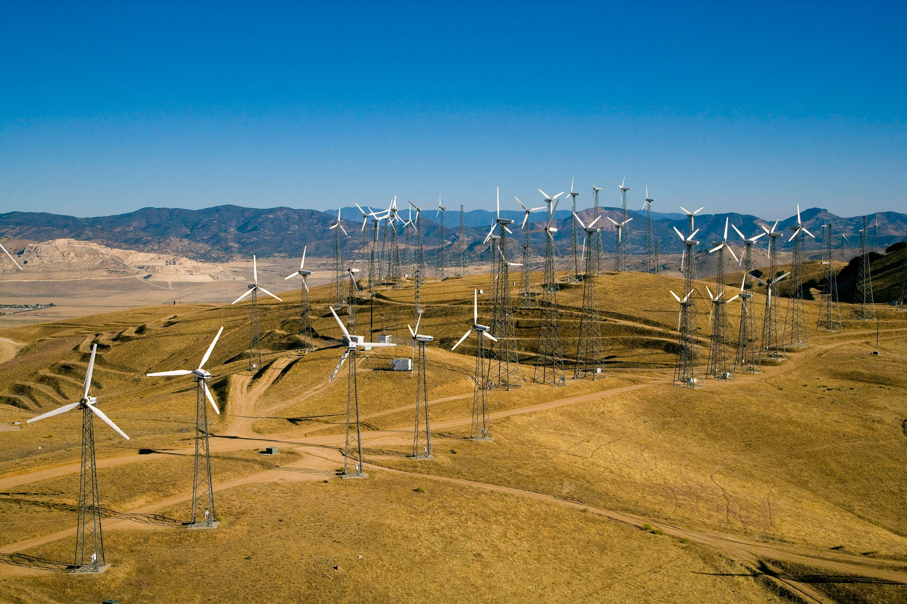 Éoliennes de San Gorgonio Pass, dans les environs de Palm Spring, Californie, États-Unis (33°55’ N – 116°42’ O).