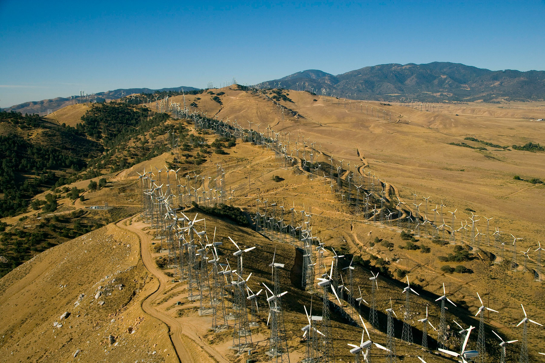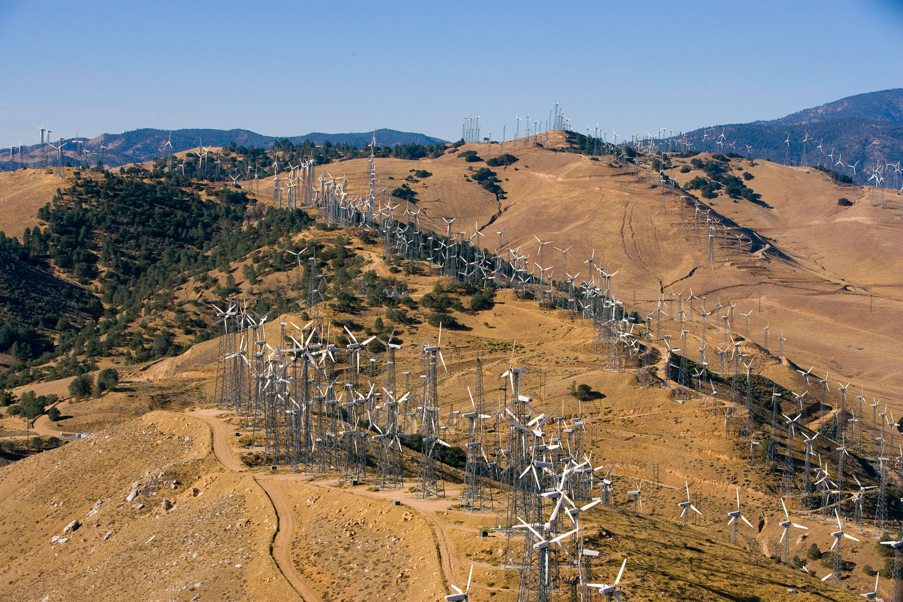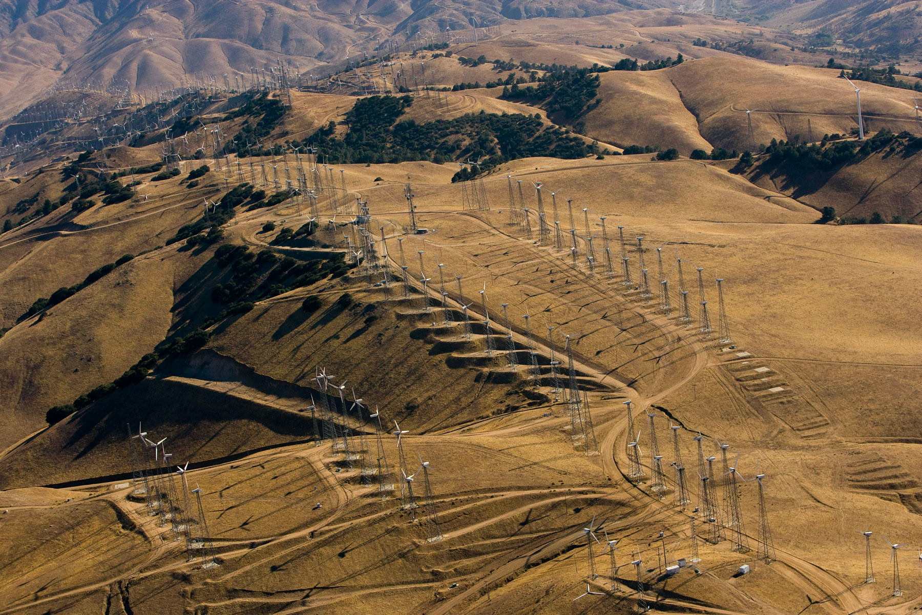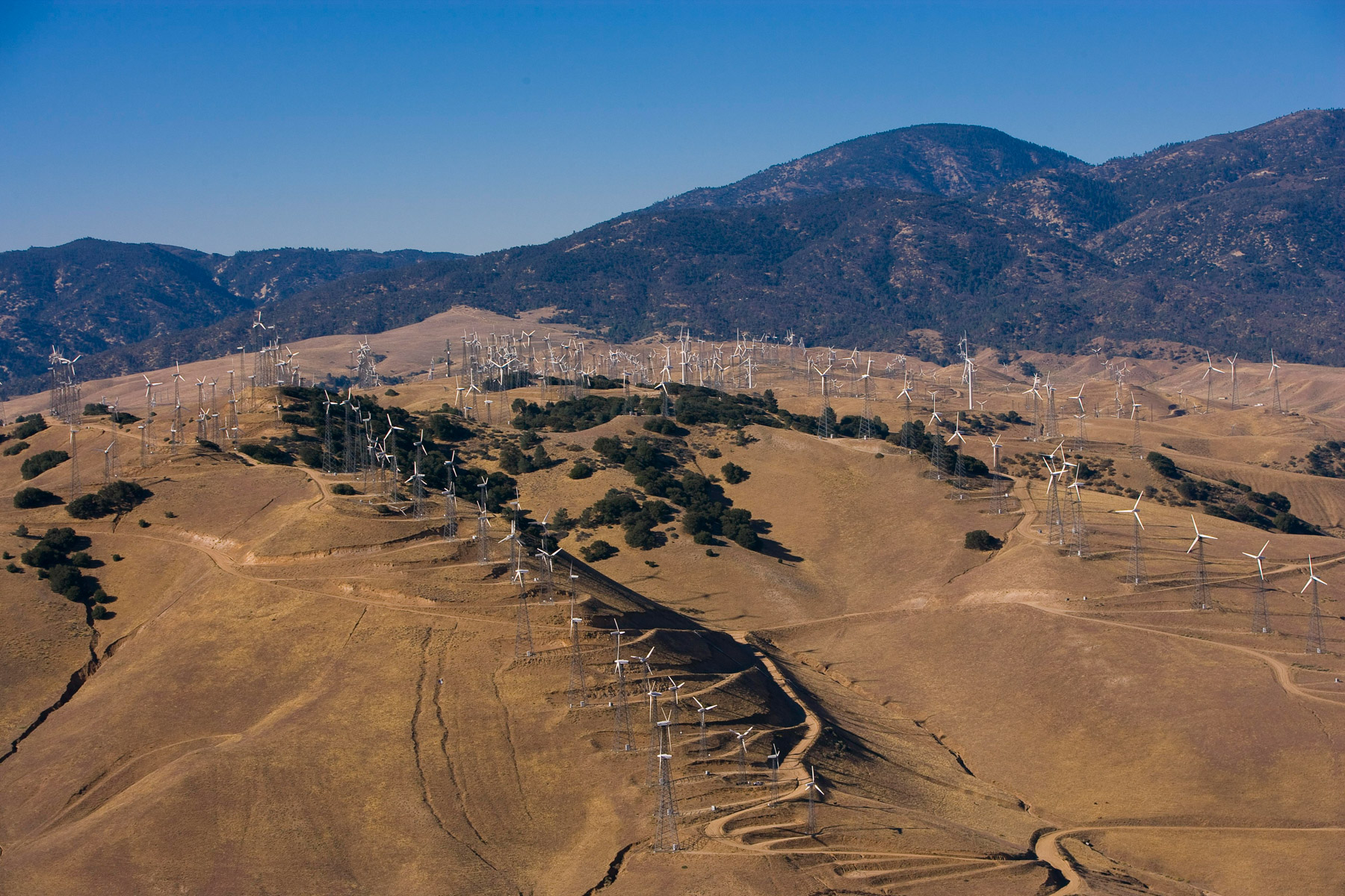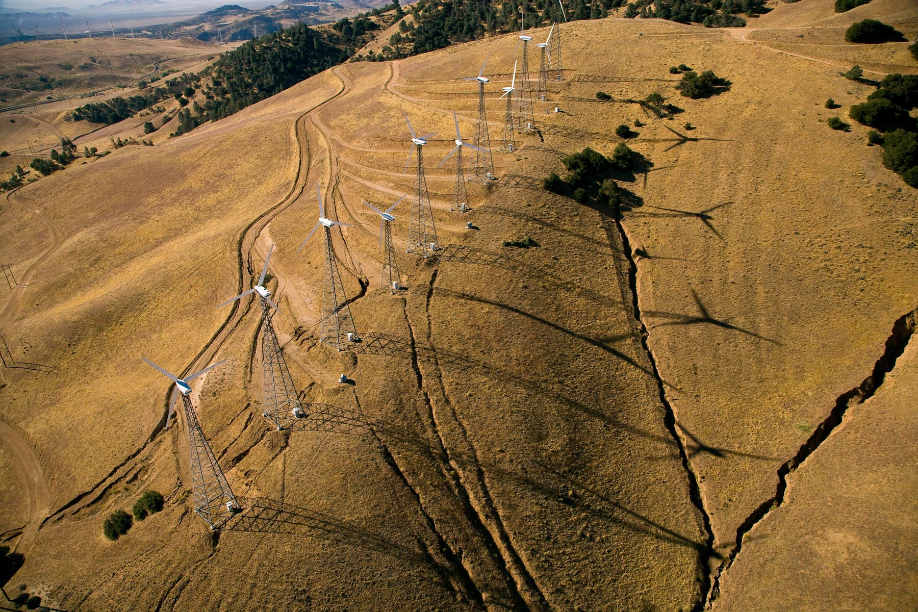 Éoliennes de San Gorgonio Pass, dans les environs de Palm Spring, Californie, États-Unis (33°55’ N – 116°42’ O).