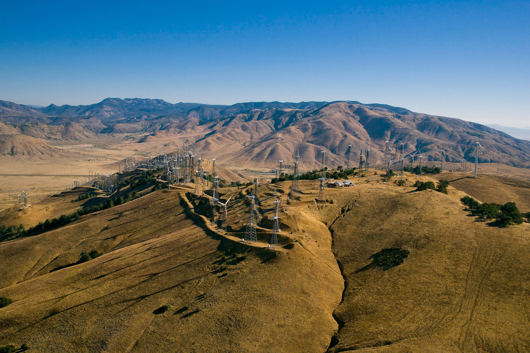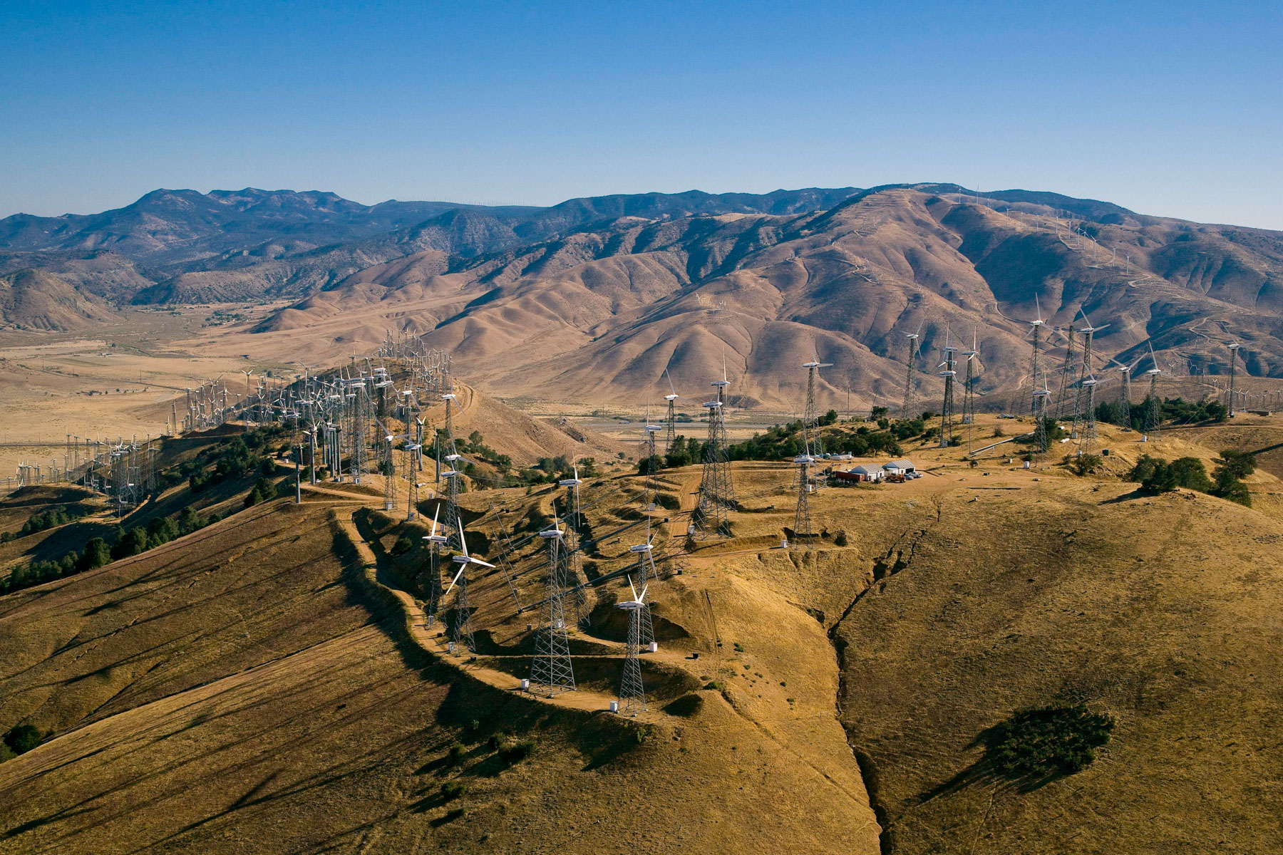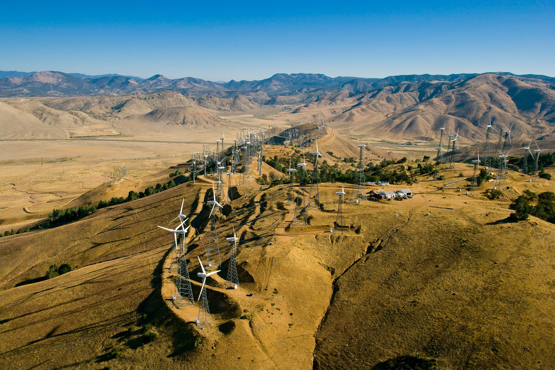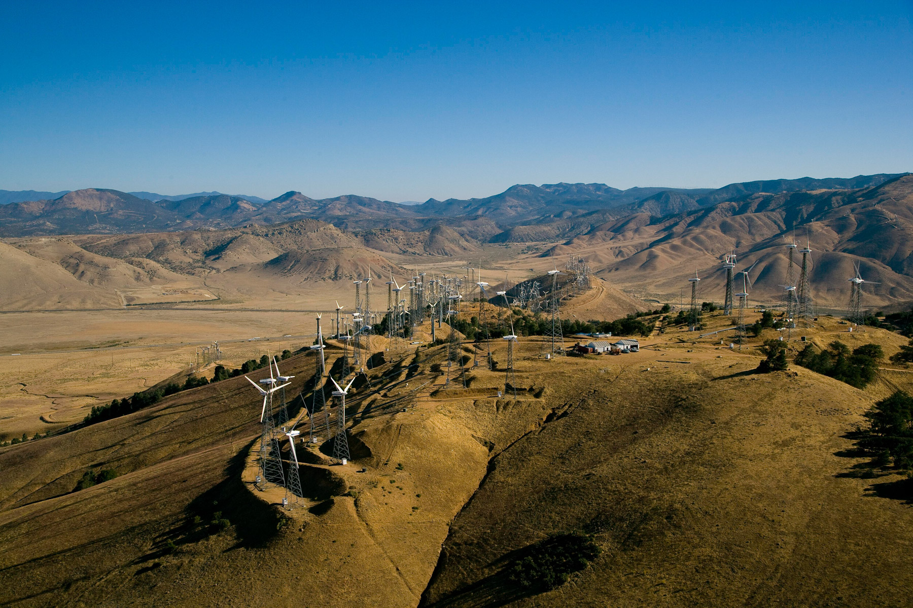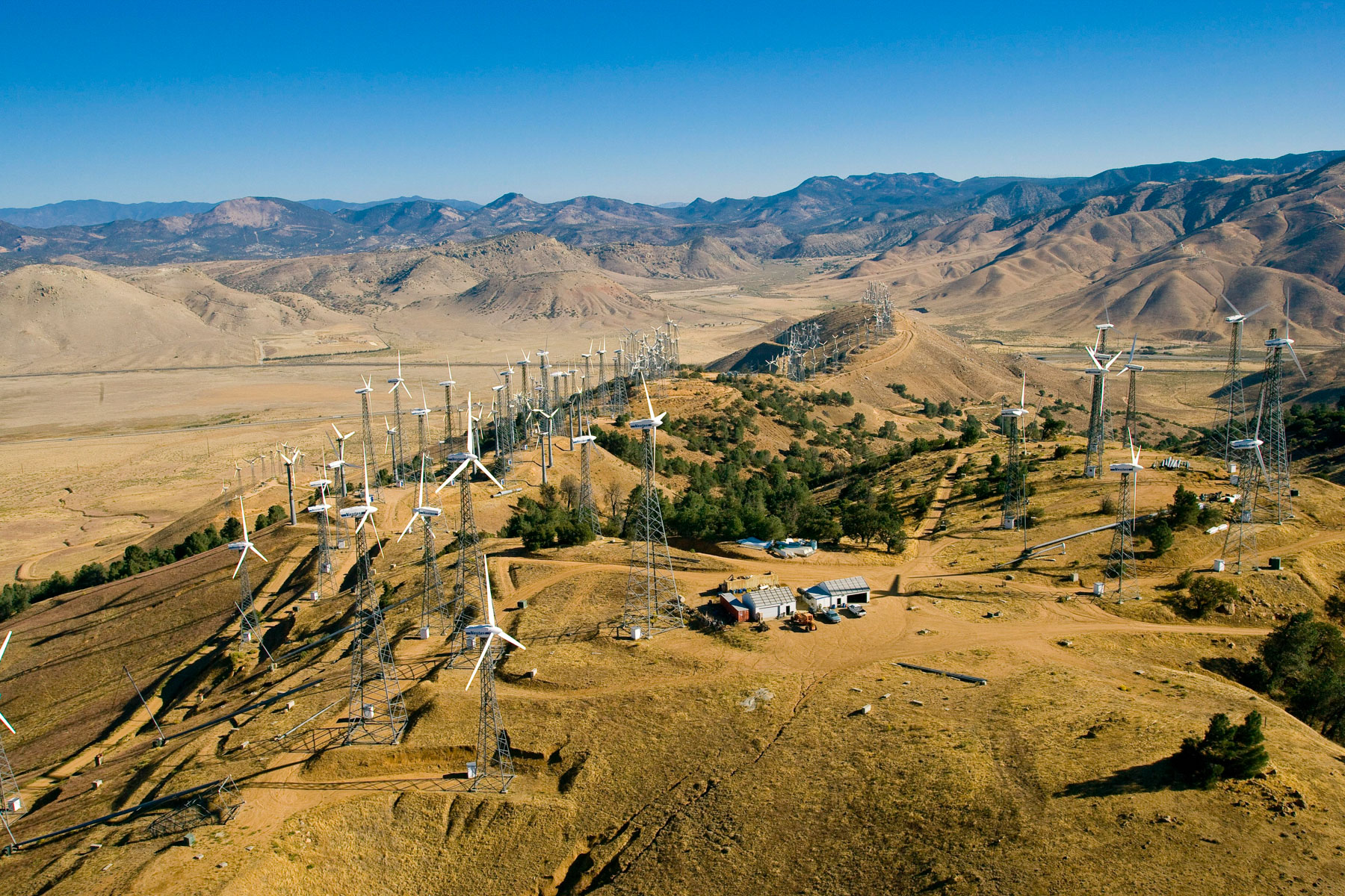 Éoliennes de San Gorgonio Pass, dans les environs de Palm Spring, Californie, États-Unis (33°55’ N – 116°42’ O).