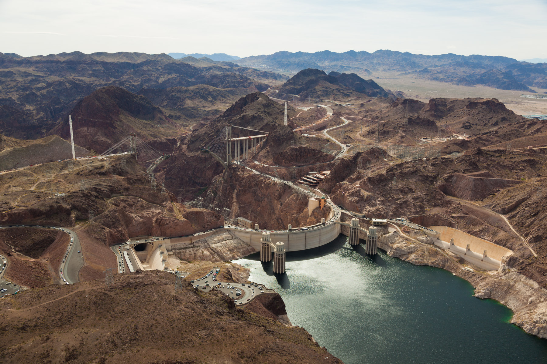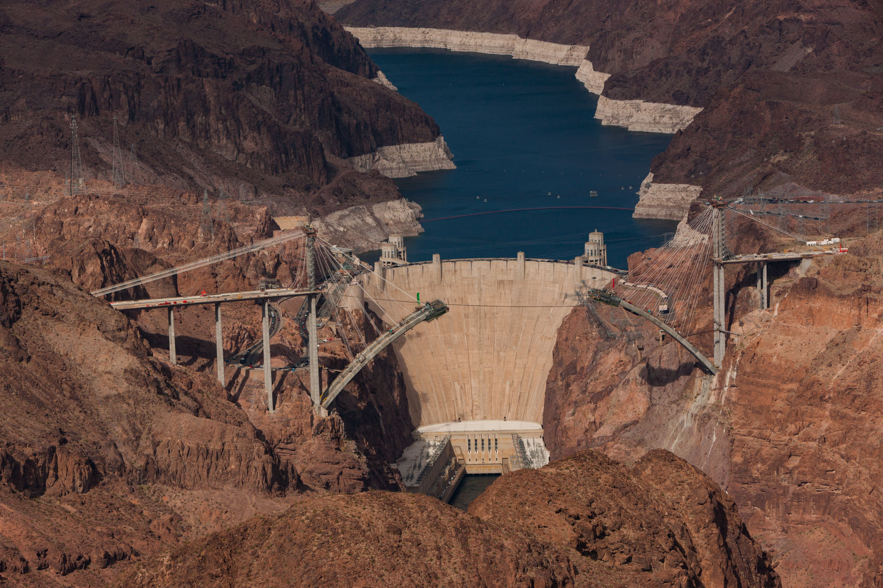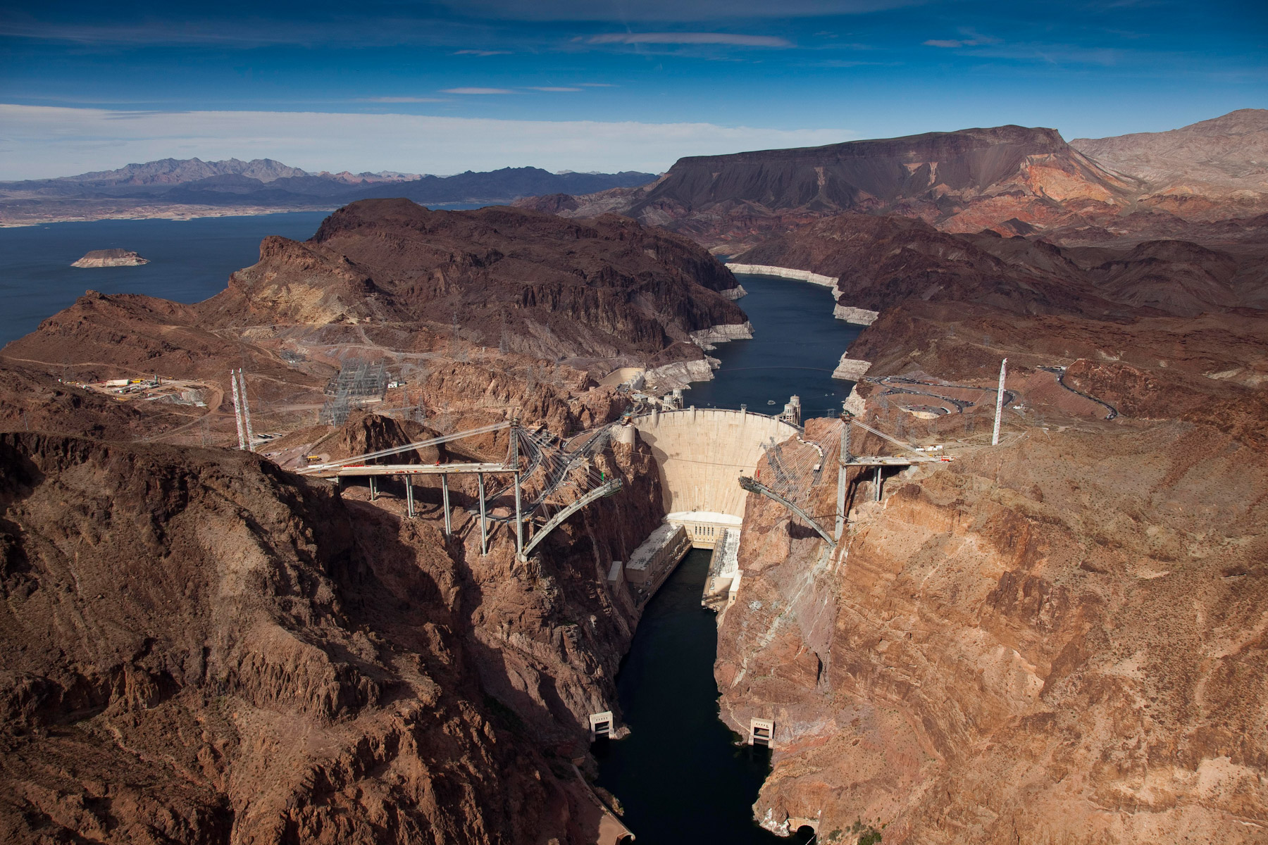 Barrage Hoover sur le fleuve Colorado près de Boulder City, états du Nevada et de l'Arizona, Etats-Unis (36° 0'56.41"N -114°44'17.19"O)