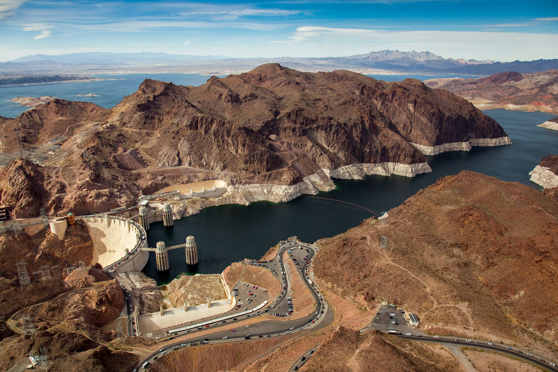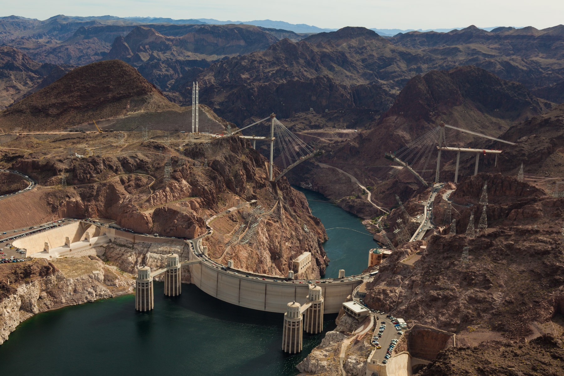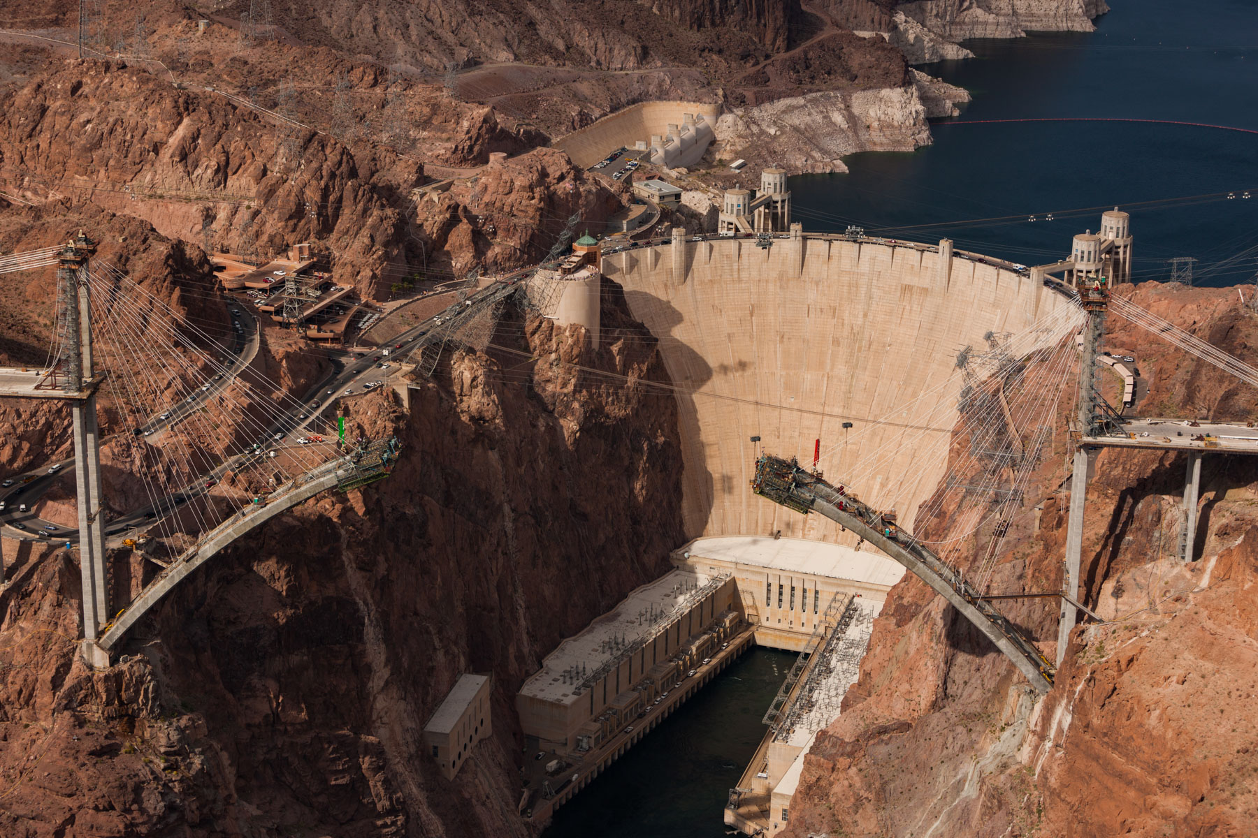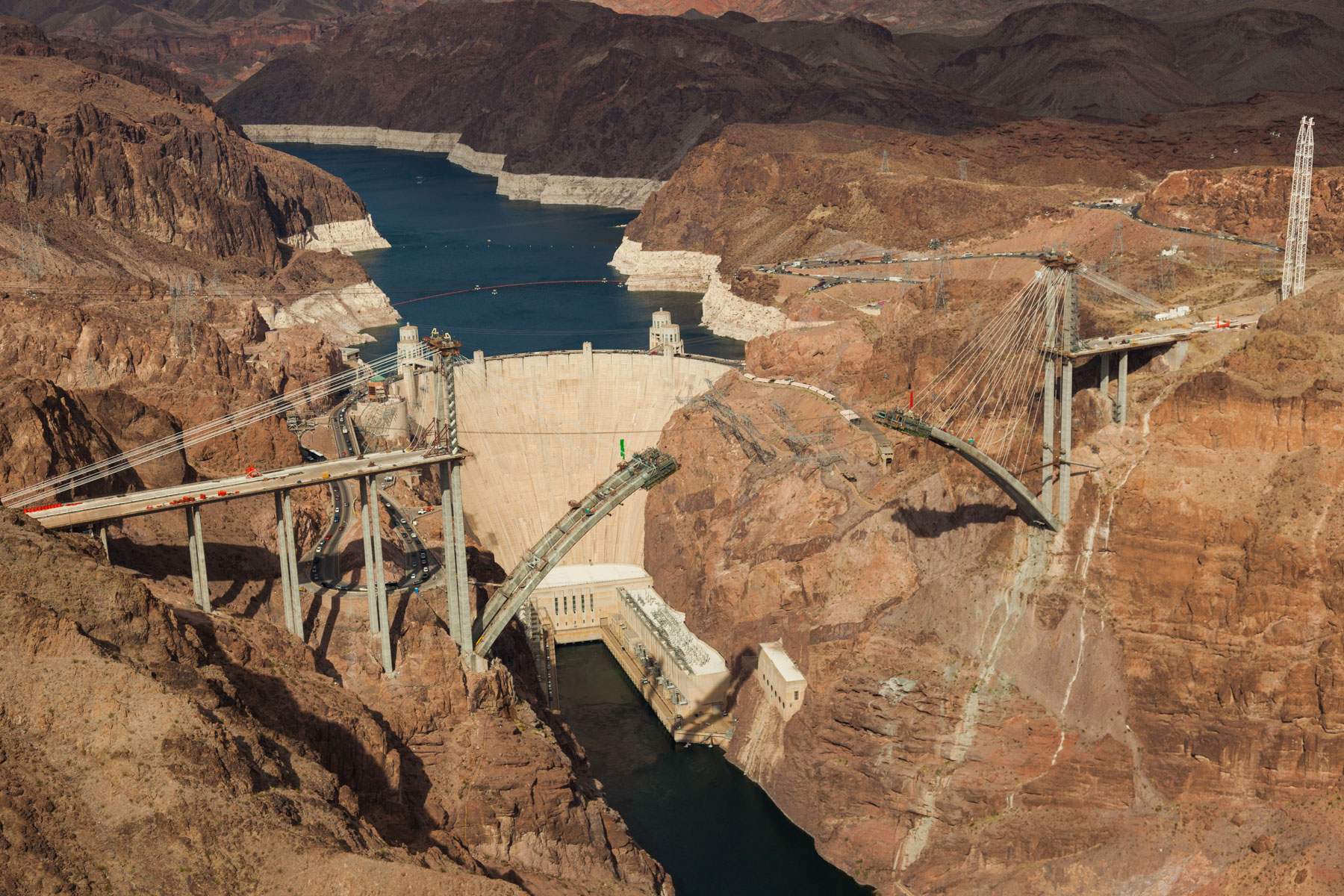 Barrage Hoover sur le fleuve Colorado près de Boulder City, états du Nevada et de l'Arizona, Etats-Unis (36° 0'56.41"N -114°44'17.19"O)