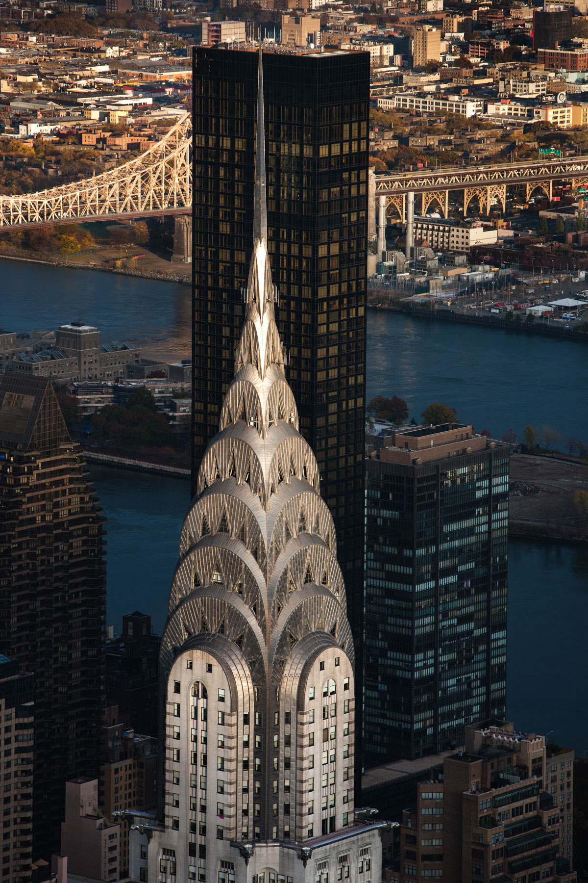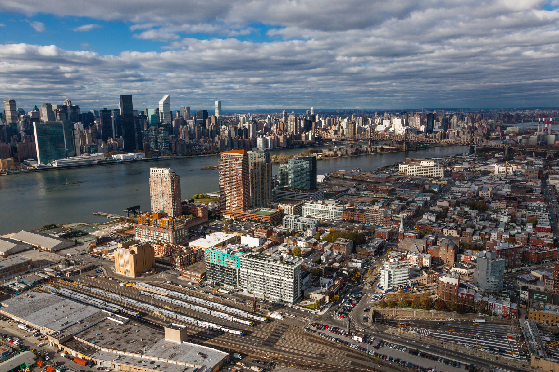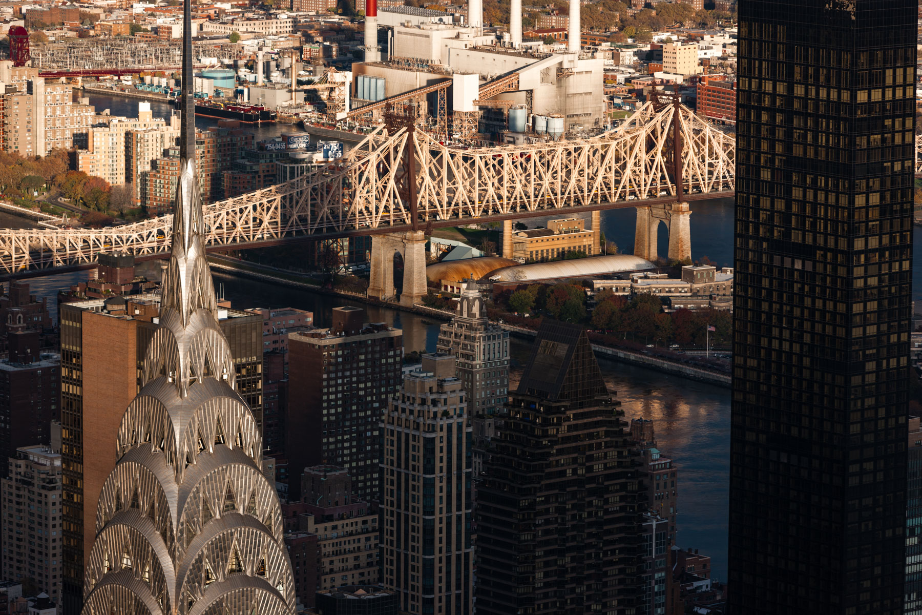 The Mayor Edward Koch Bridge or Queensboro Bridge and the borough of Queens, Manhattan, New York, United States (40°45’ N, 73°57’ W).