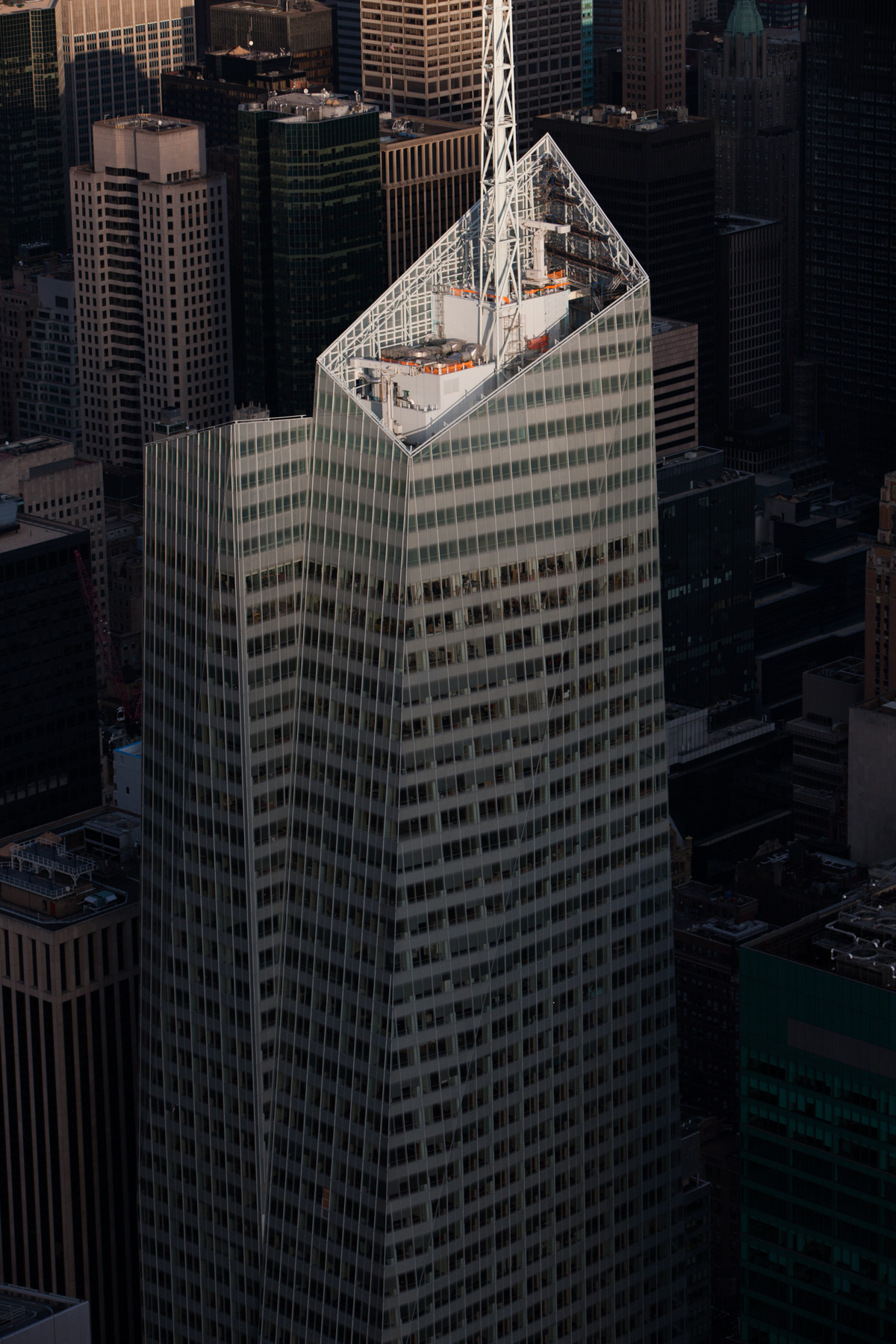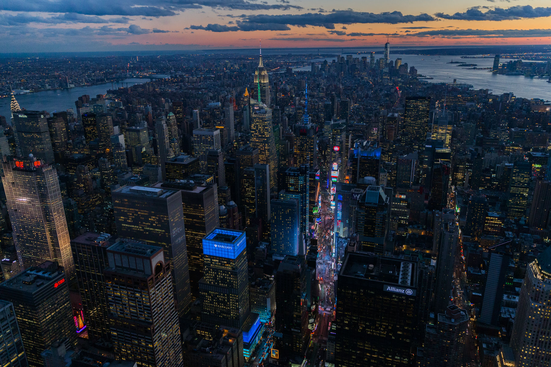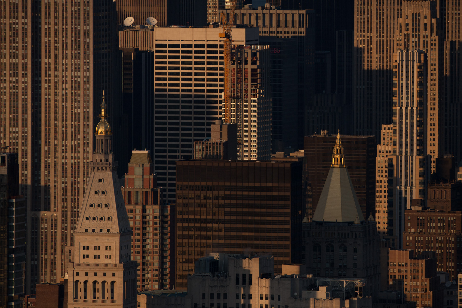One Worldwide Plaza and Empire State Building in Midtown, Manhattan, New York, United States (40°46’ N, 73°59’ W).