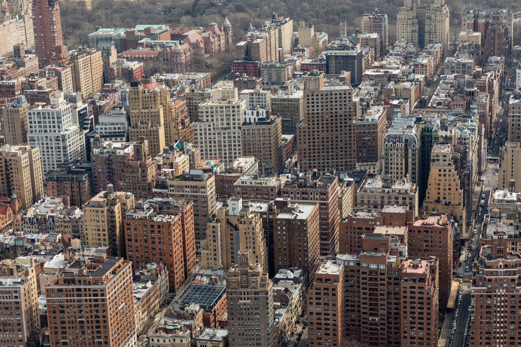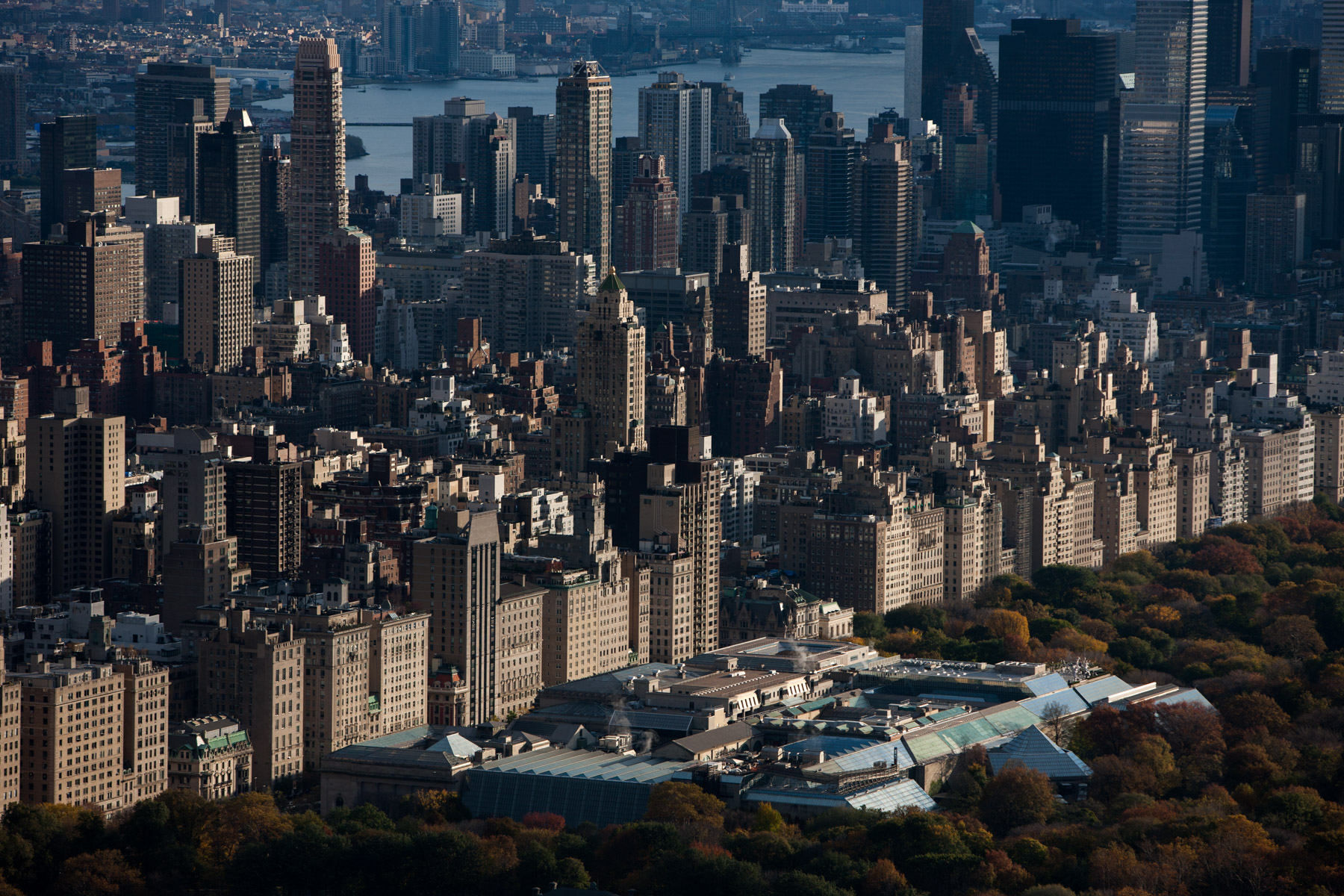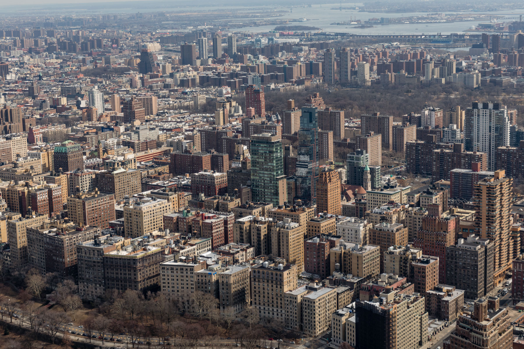 Manhattan and Central Park as seen from Upper West Side, Manhattan, New York, United States (40°46’ N, 73°58’ W).