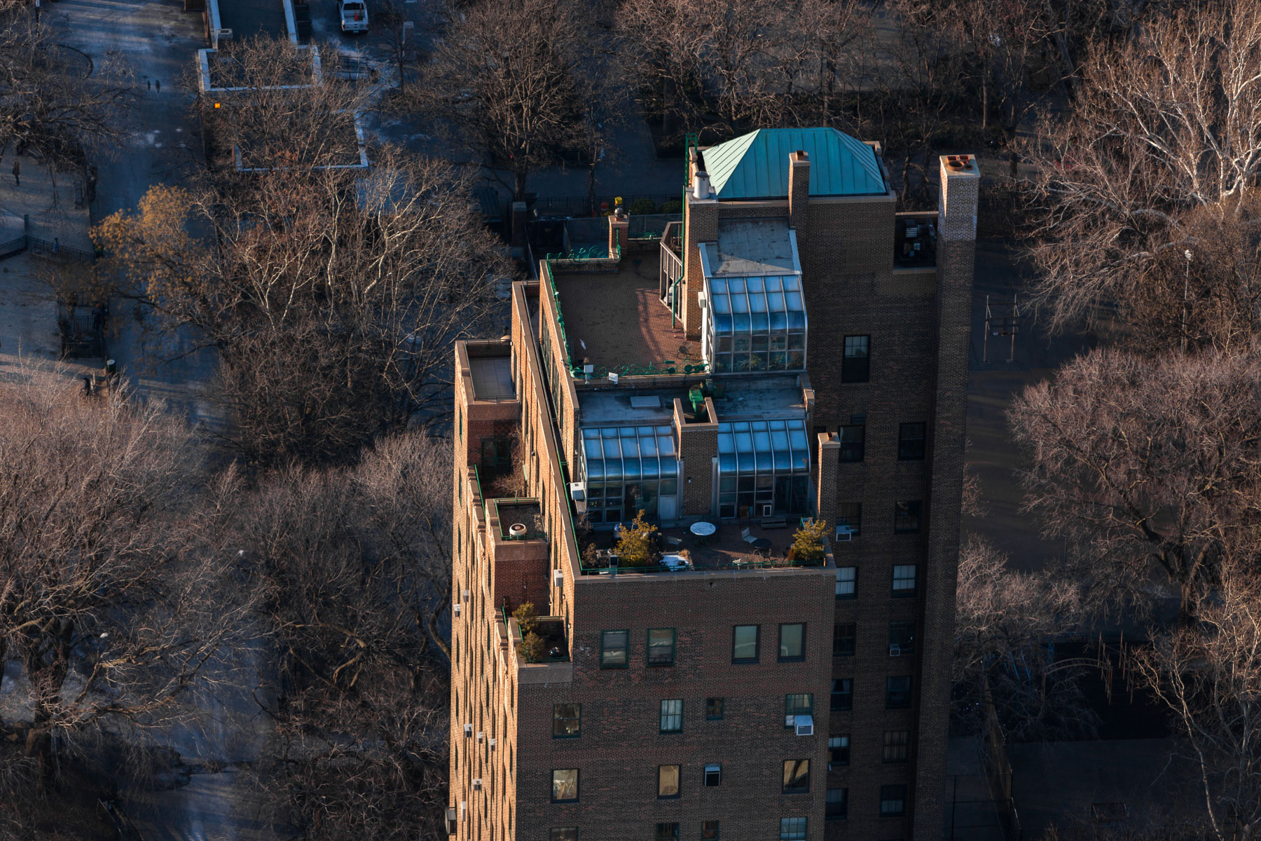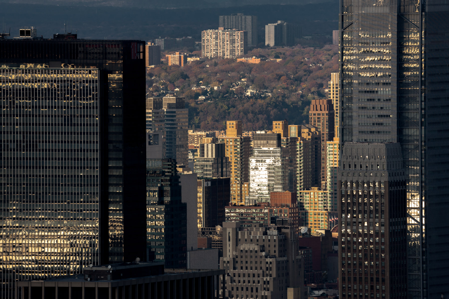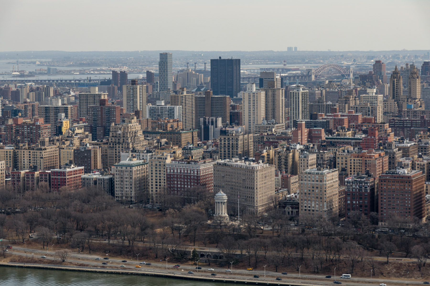 Manhattan and Central Park as seen from Upper West Side, Manhattan, New York, United States (40°46’ N, 73°58’ W).