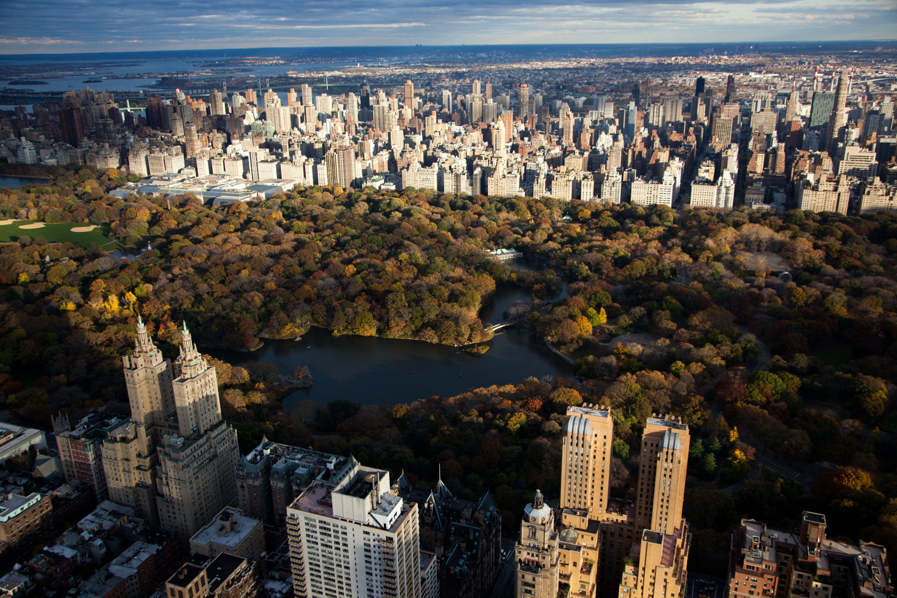 The Majestic and the Eldorado Apartment and Central Park, Rowboat lake, Central Park, Manhattan, New York, United States (40°46'34"N, 73°58'16"W).