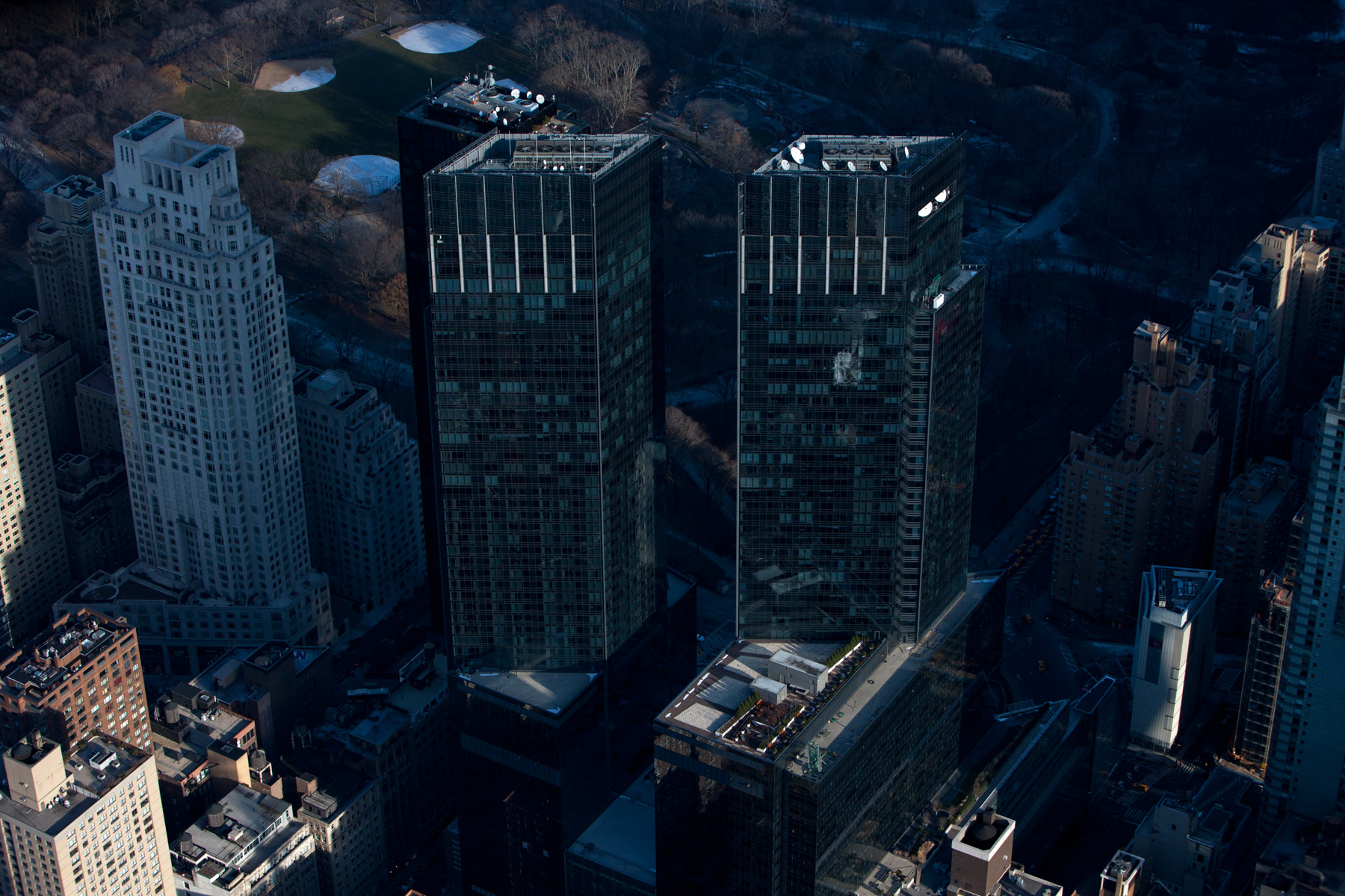 Time Warner Center Towers, 10 Columbus Circle, Midtown, Manhattan, New York, United States (40°46'07"N, 73°58'58"W).