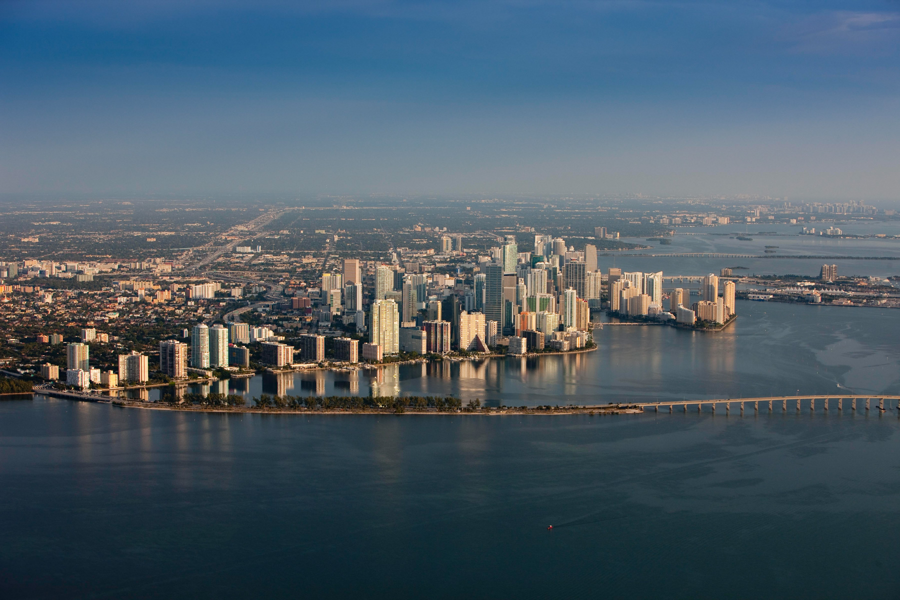 Miami et le Pont Rickenbacker Causeway dans Biscayne Bay, Comté de Miami-Dade, Floride, Etats-Unis ( 25°44'47.42"N - 80°11'2.14"O)