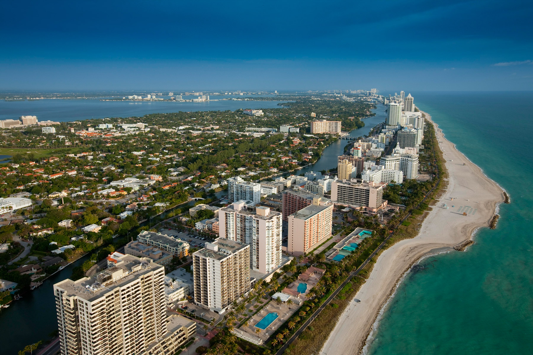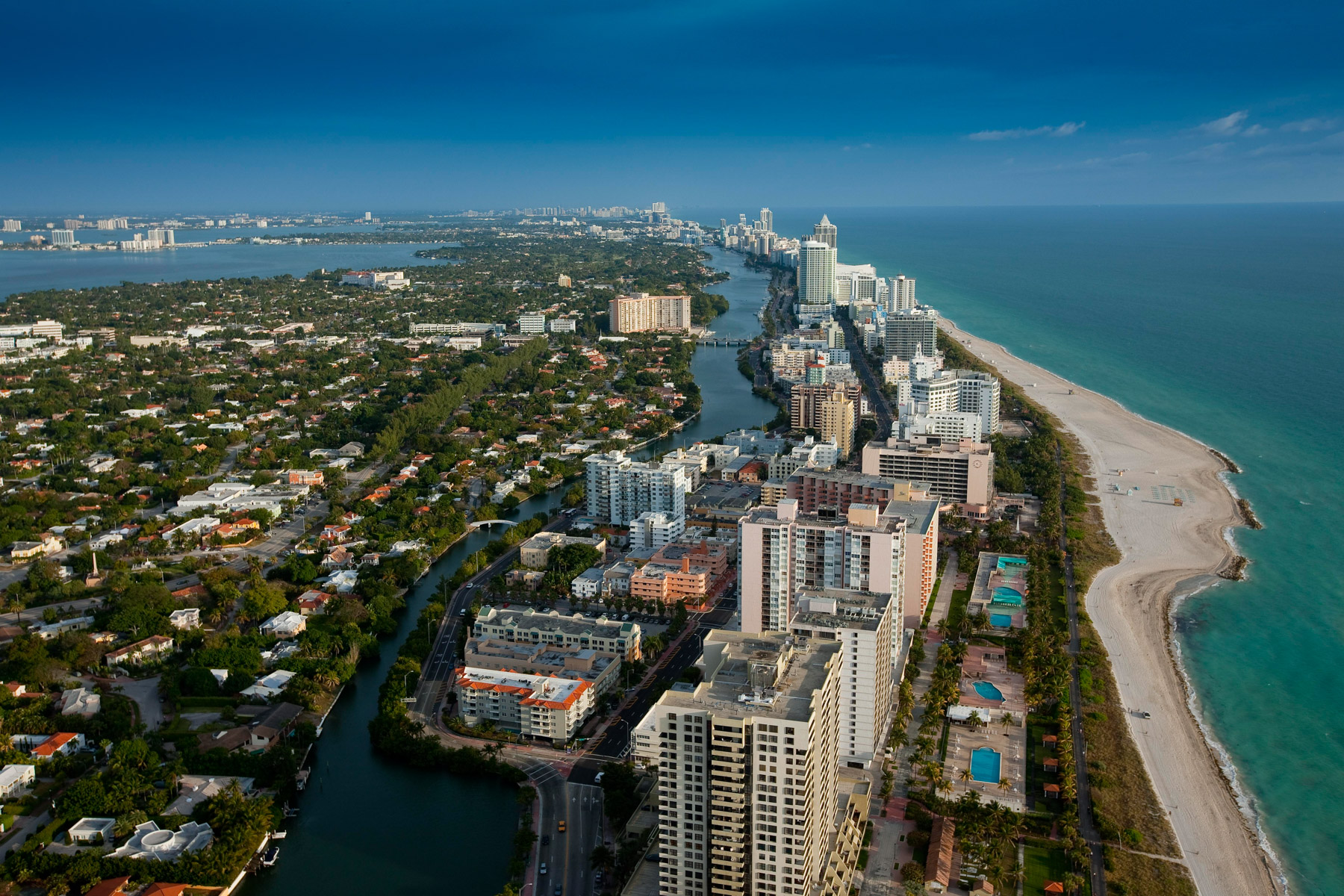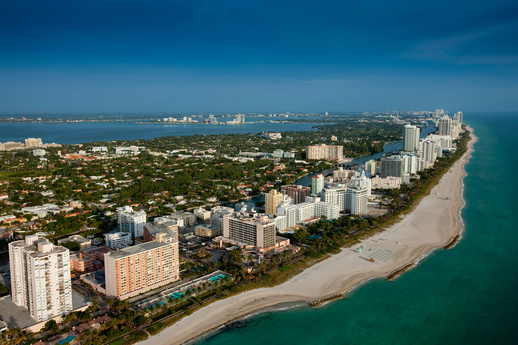 Miami Beach et Miami au fond, Comté de Miami-Dade, Floride, Etats-Unis