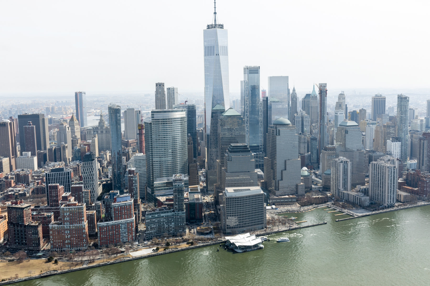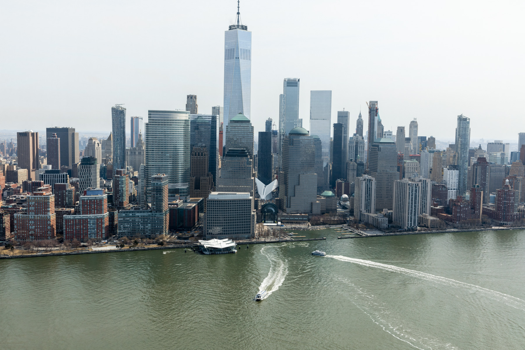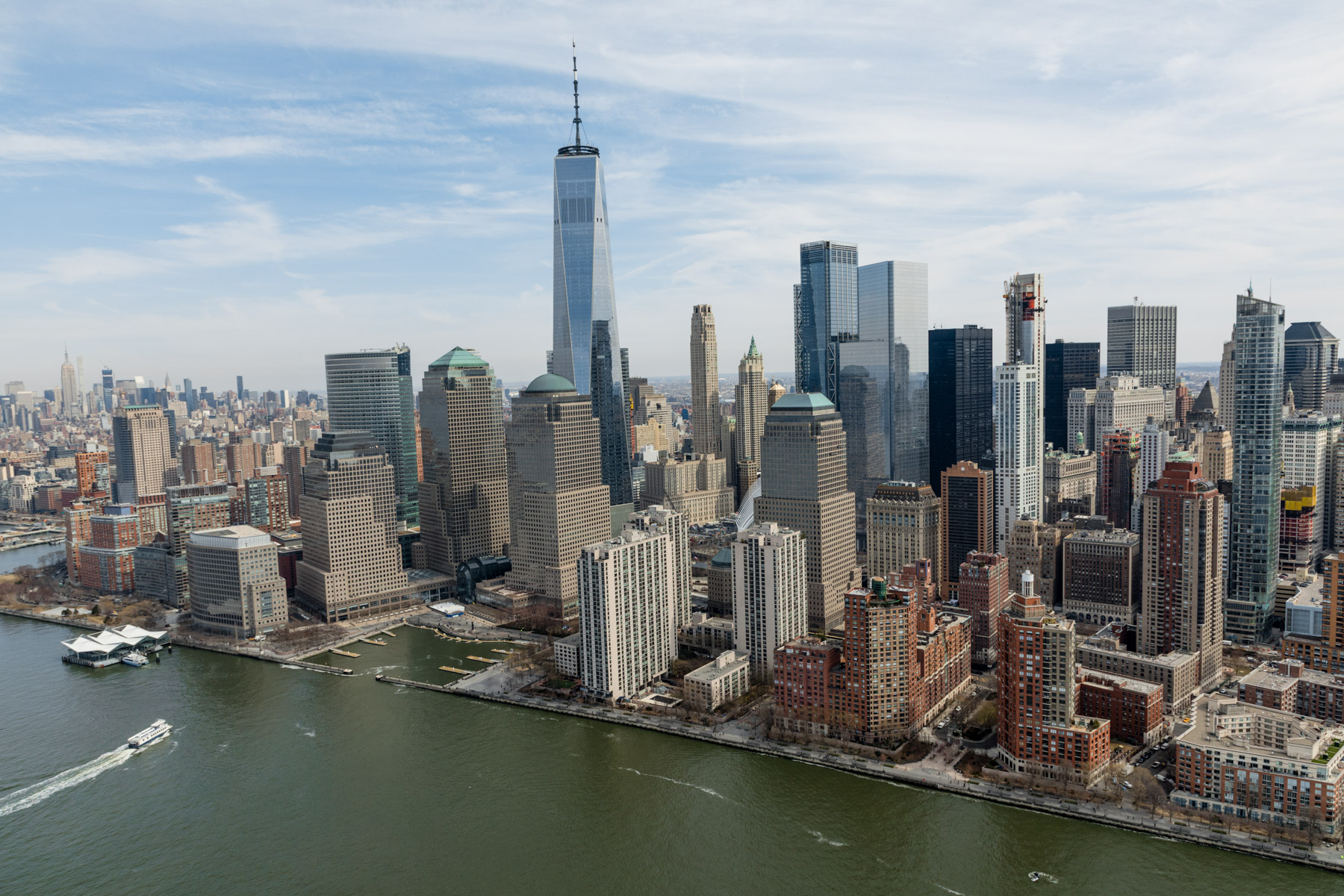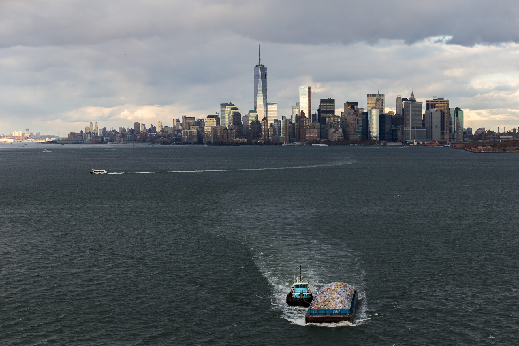Boat off Manhattan and One World Trade Center, New York, United States (40°43’ N, 74°01’ W).