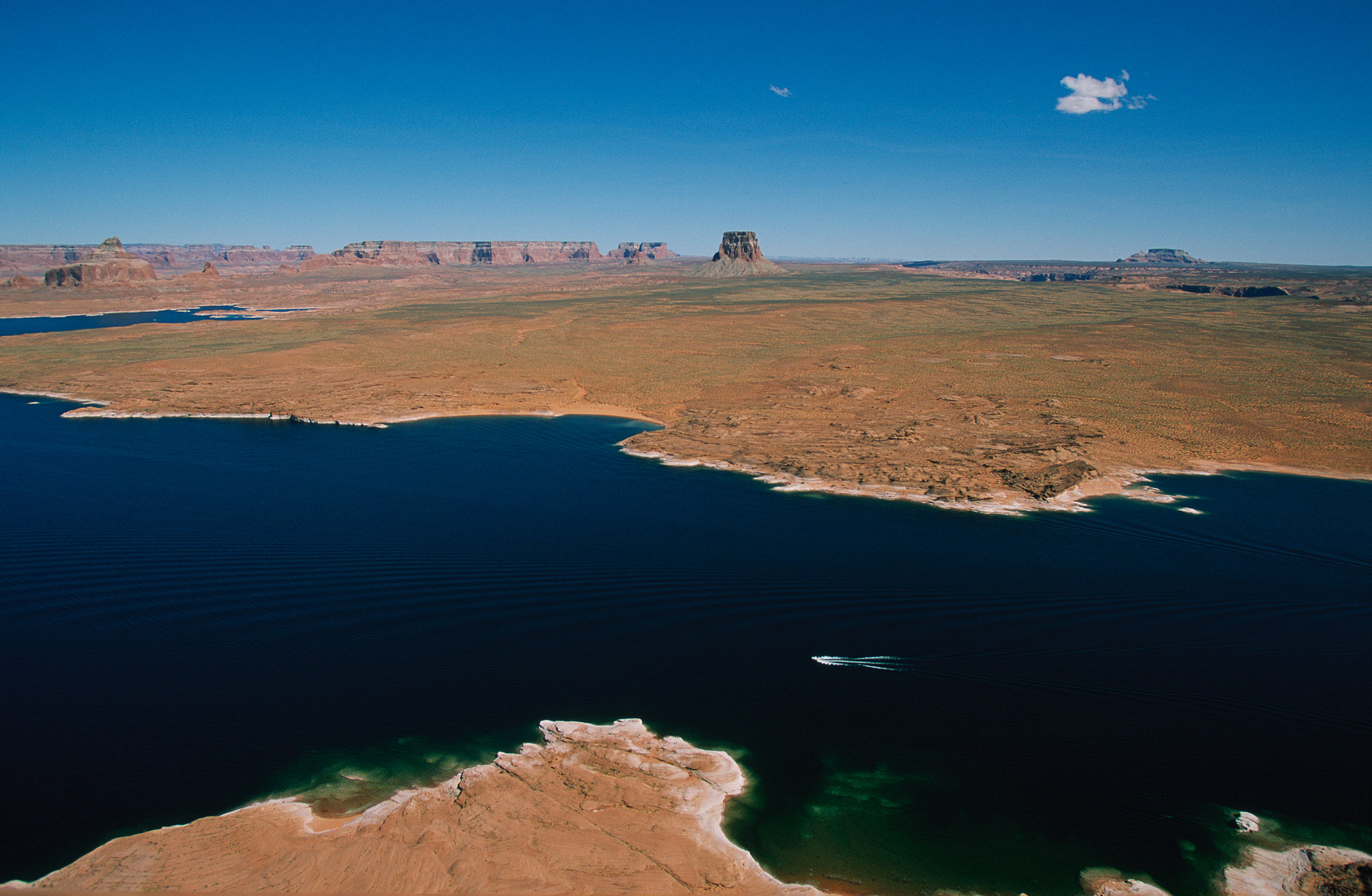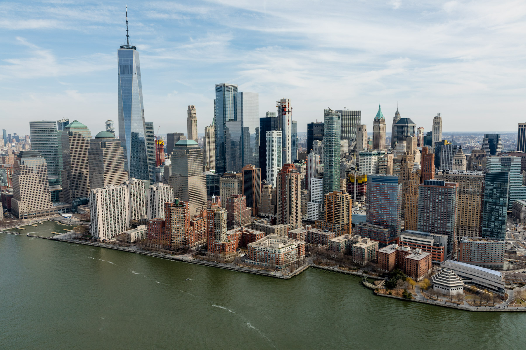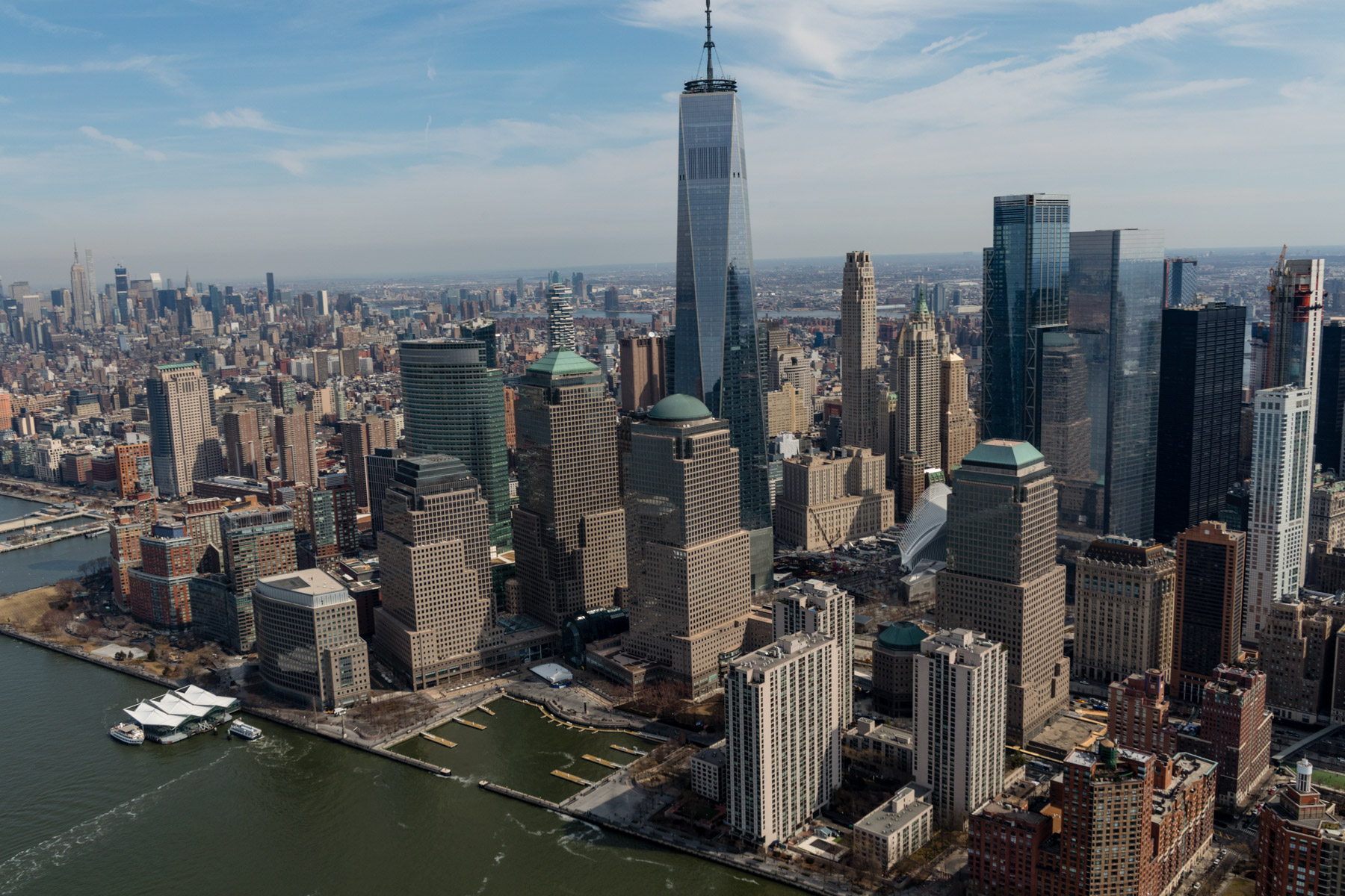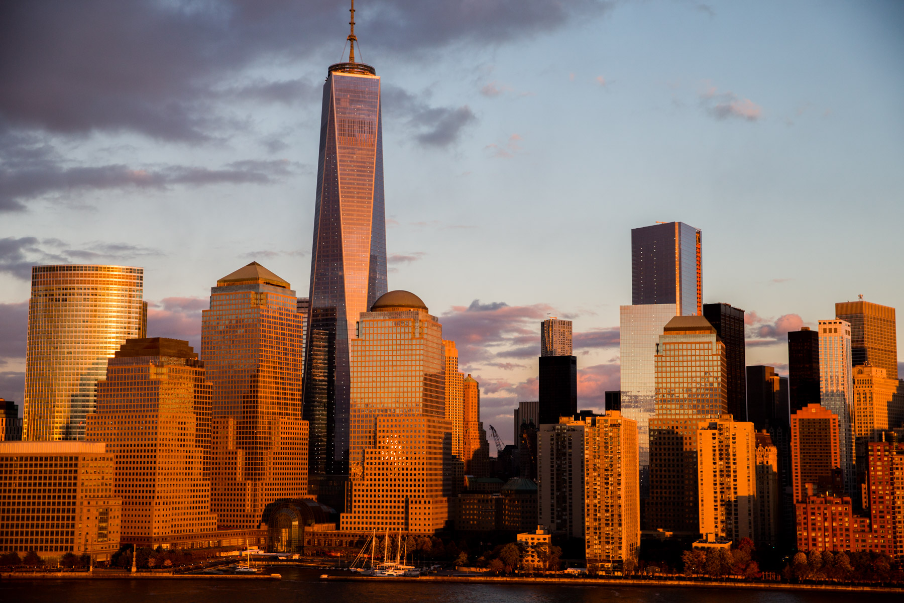 Boat off Manhattan and One World Trade Center, New York, United States (40°43’ N, 74°01’ W).