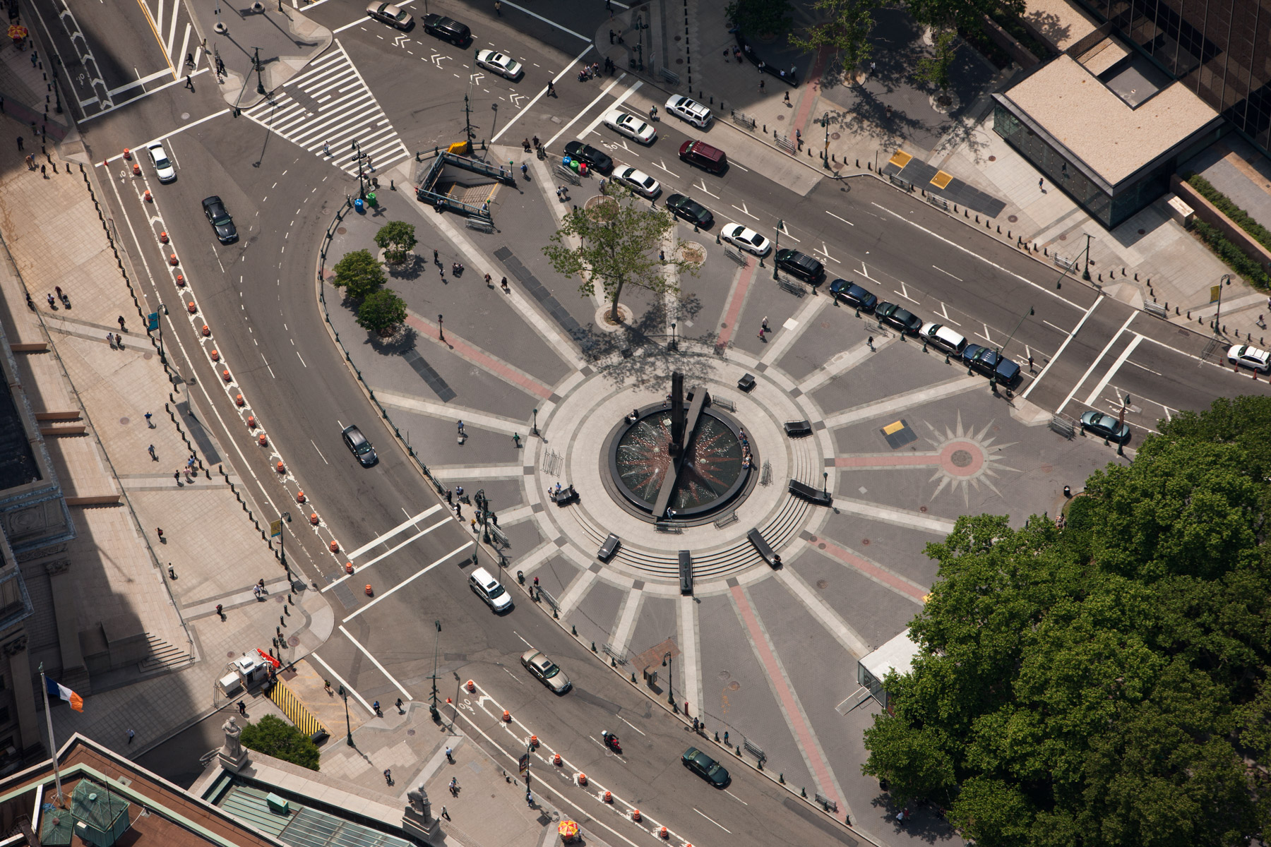 Time Warner Center Towers and the Columbus Circle fountain, Midtown, Manhattan, New York, United States (40°46'07"N, 73°58'58"W).
