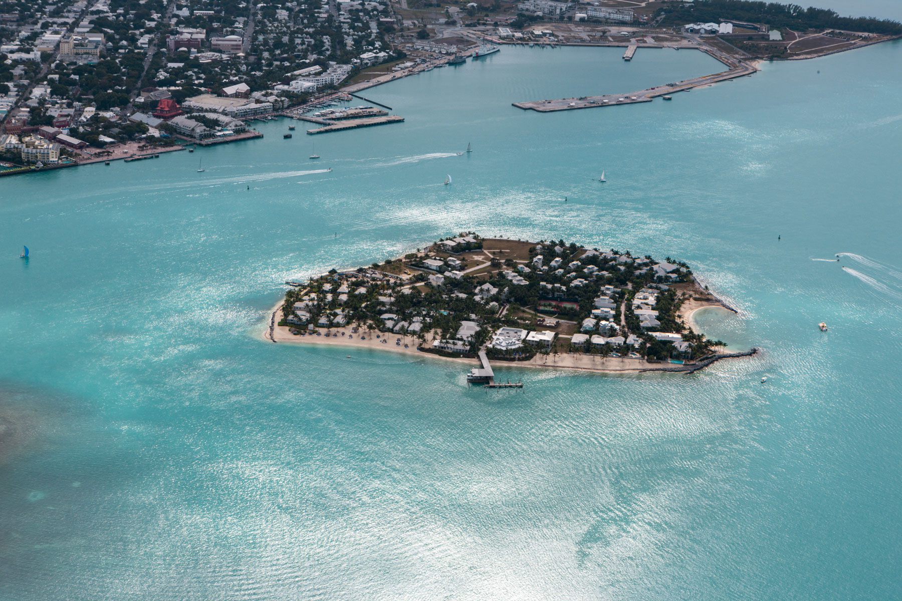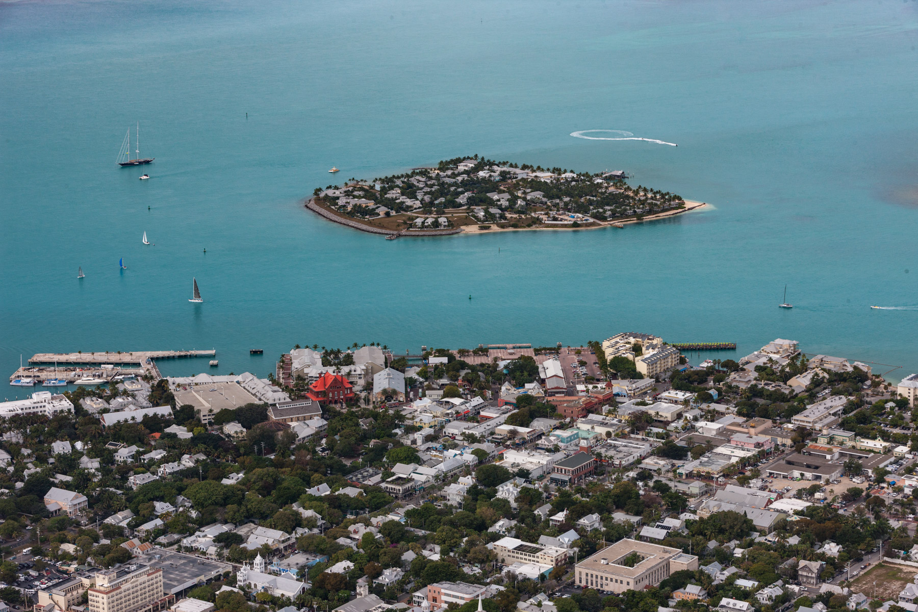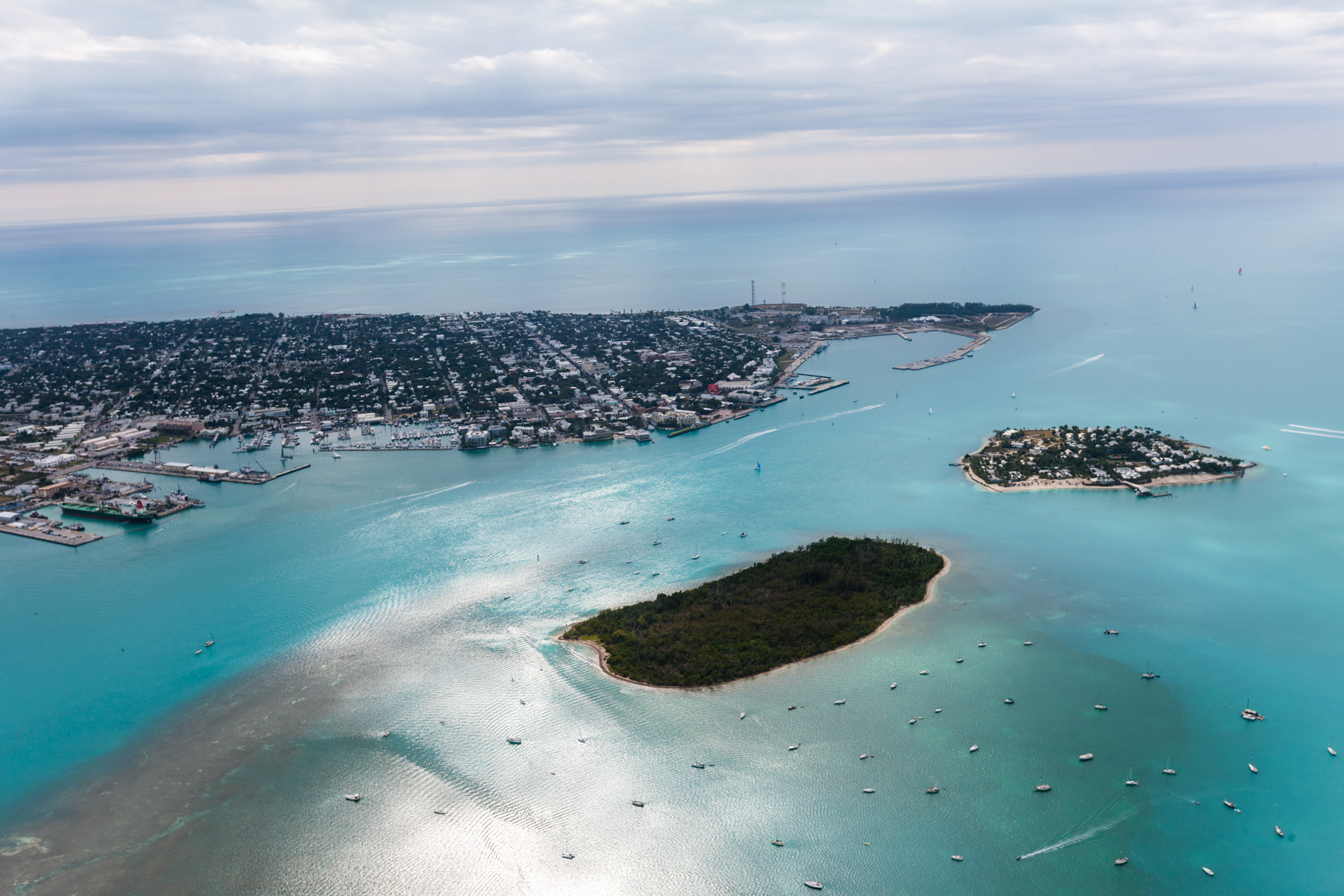 Archipel des Keys : Tank Island (devant) et Key West, Comté de Monroe, Floride, Etats-Unis ( 24°33'11.36"N - 81°48'28.48"O)