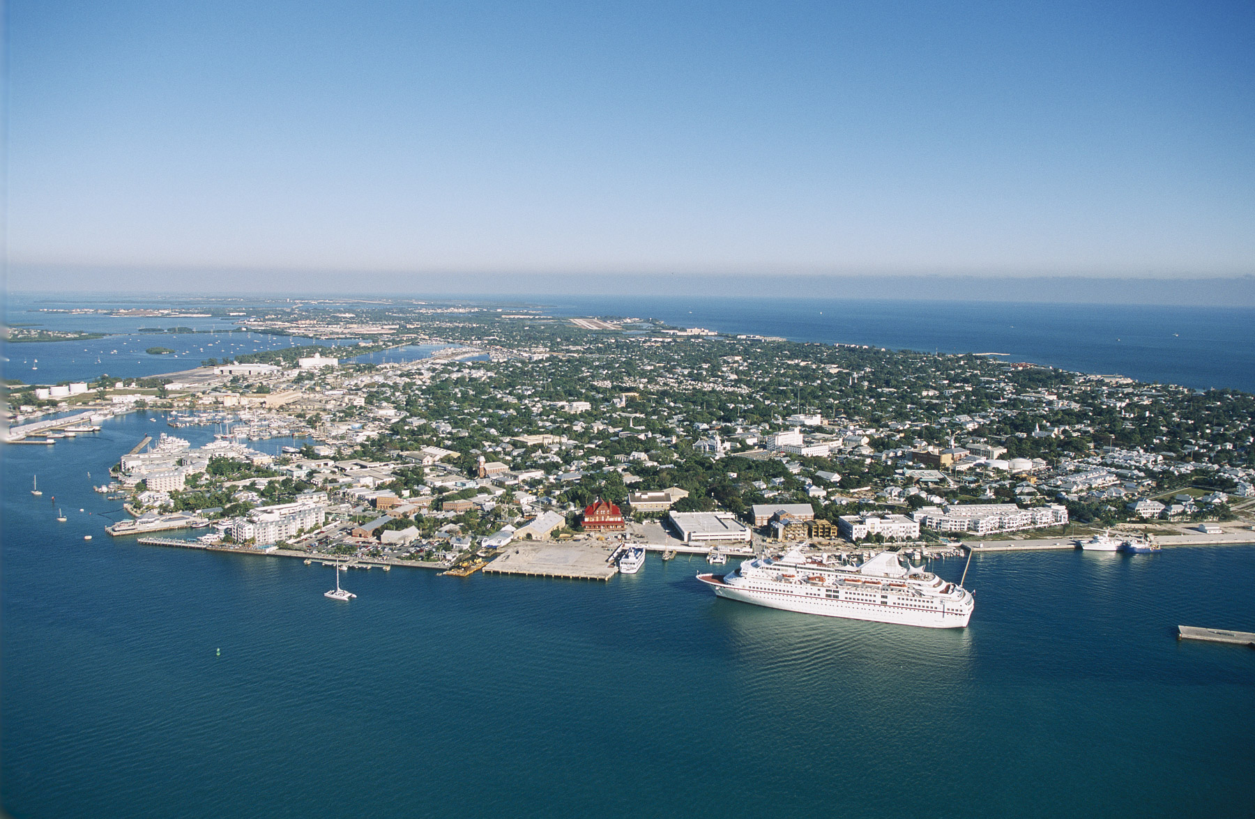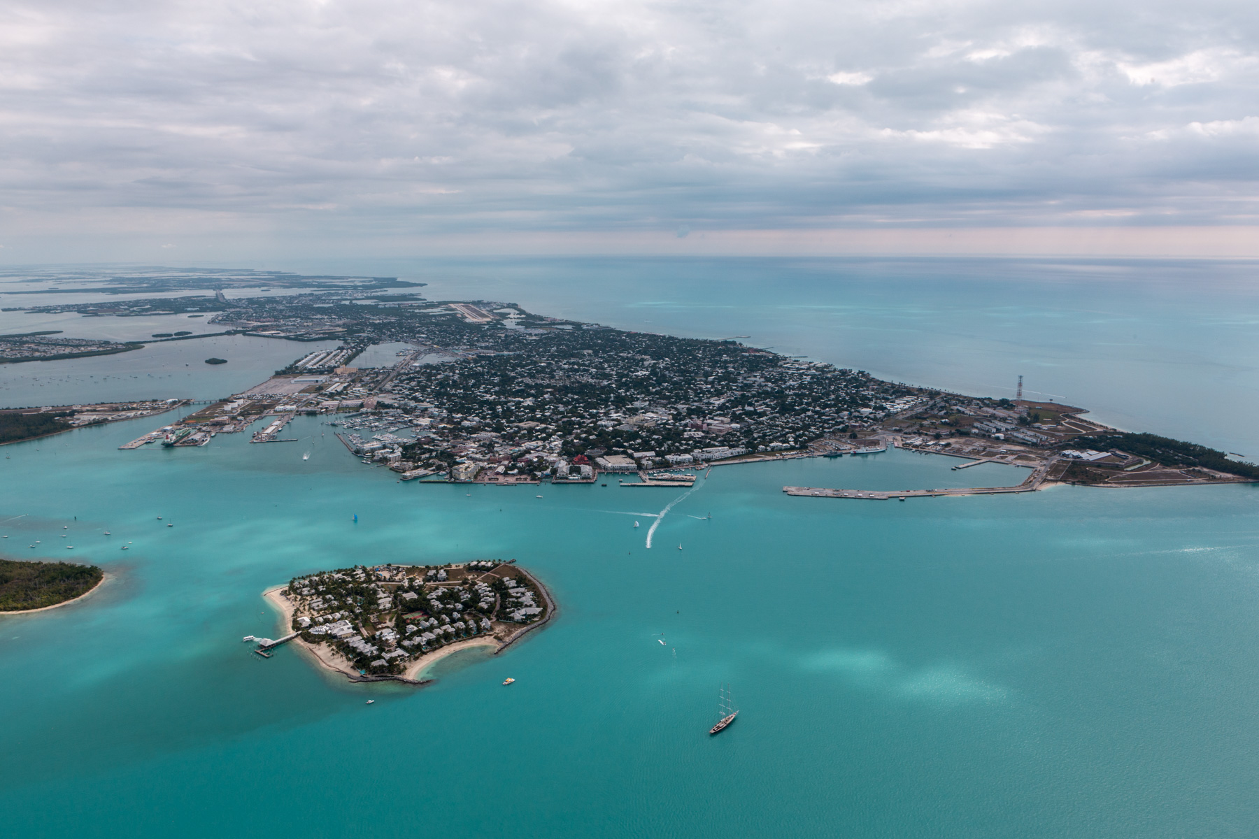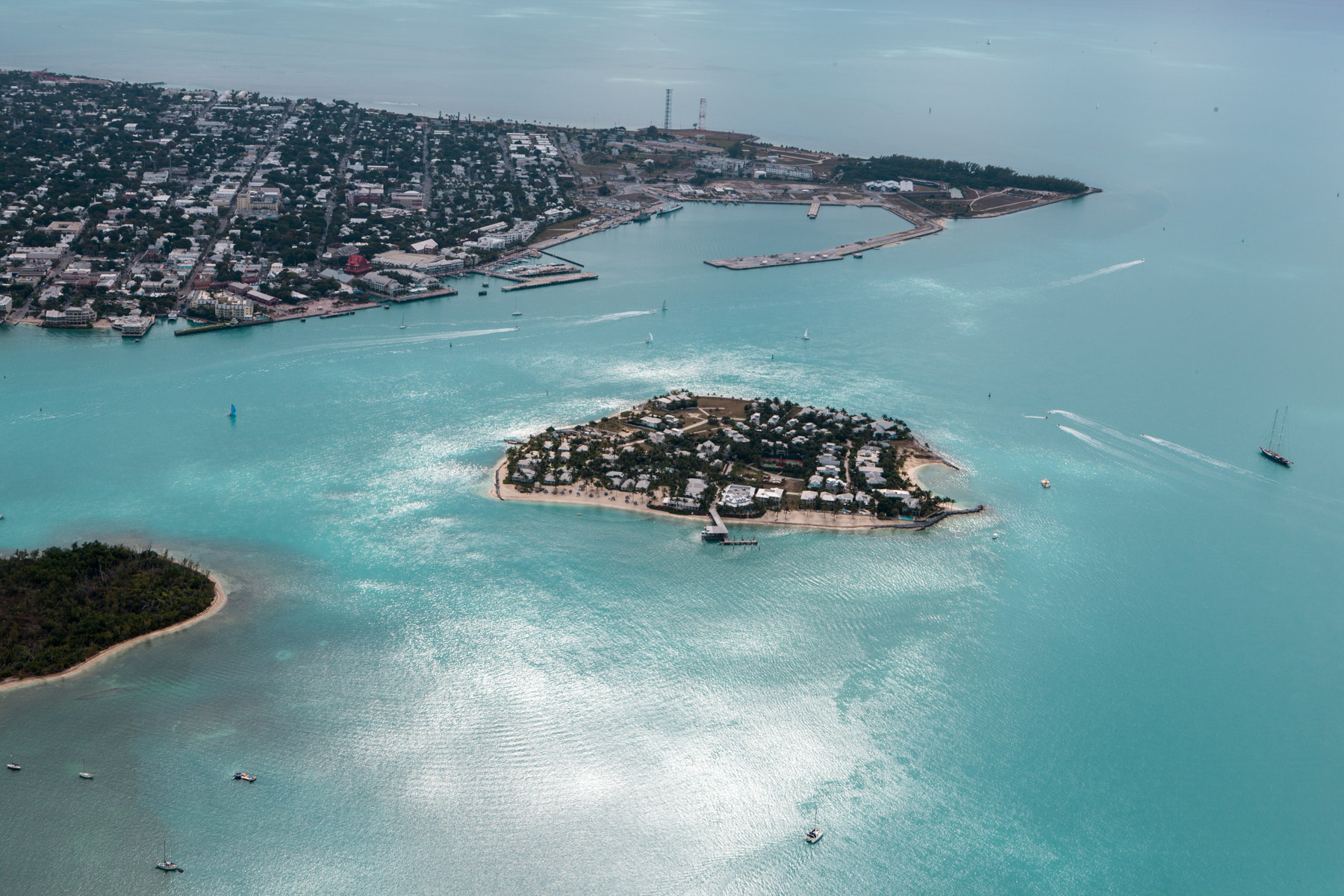 Archipel des Keys : Tank Island (devant) et Key West, Comté de Monroe, Floride, Etats-Unis ( 24°33'11.36"N - 81°48'28.48"O)