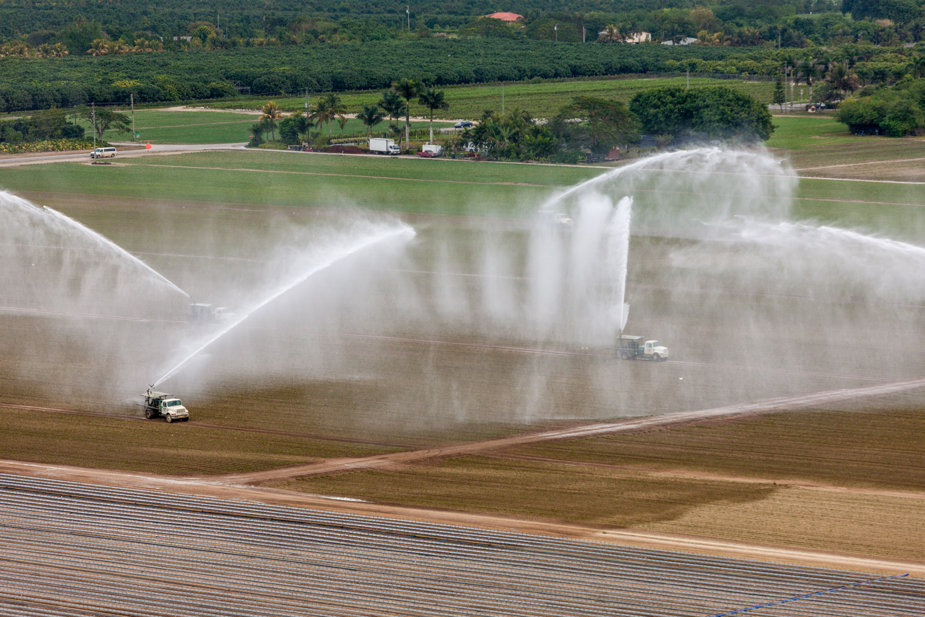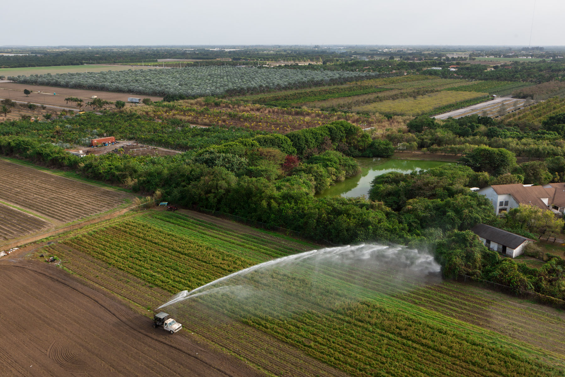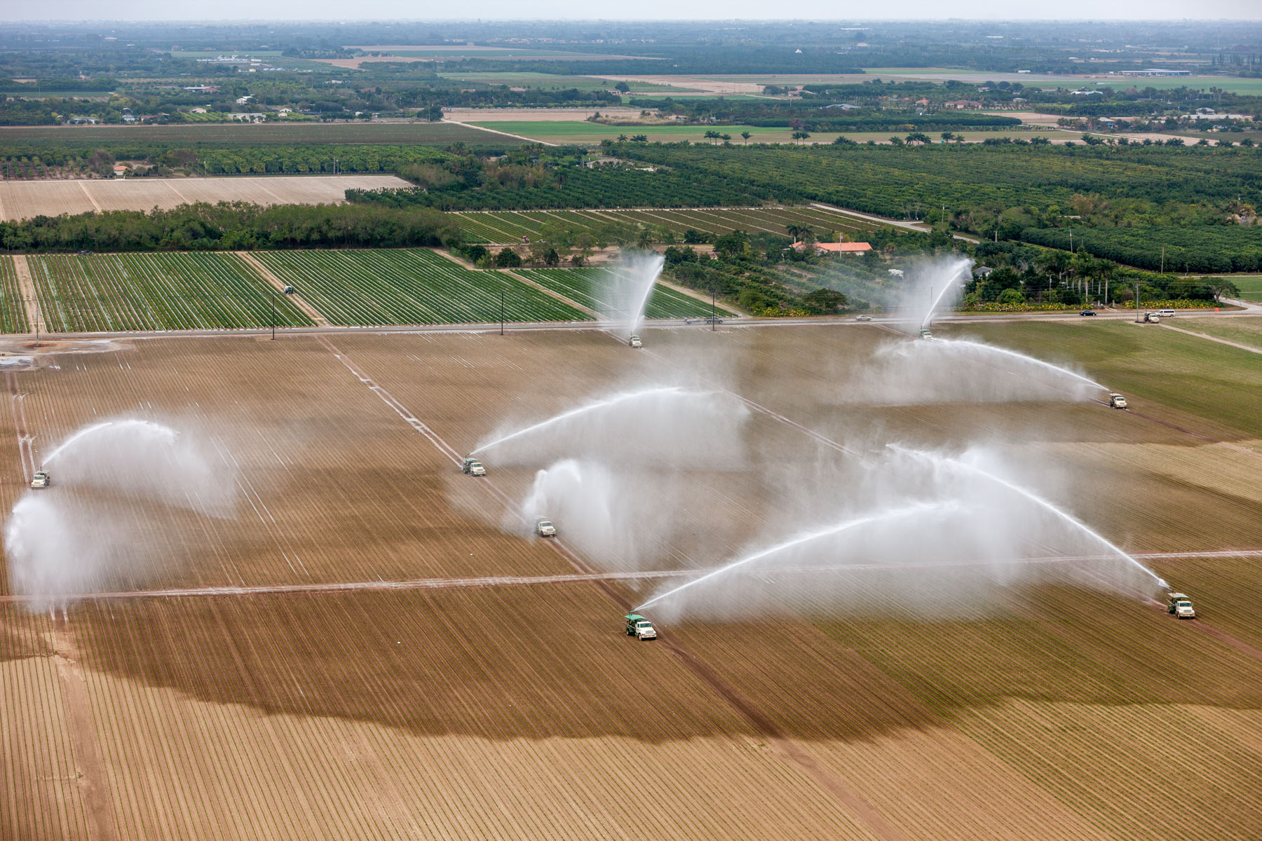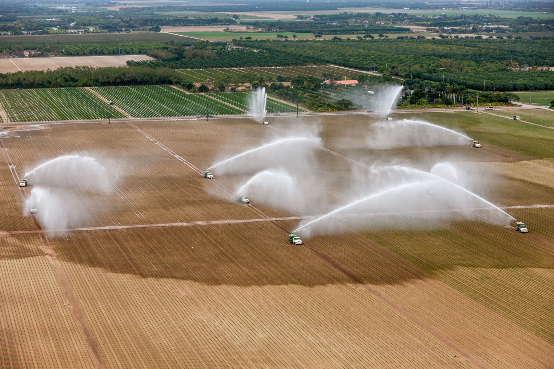 Arrosage agricole près de Country Walk (sud de Miami), Comté de Miami-Dade, Floride, Etats-Unis ( 25°37'31.38"N - 80°27'51.71"O)