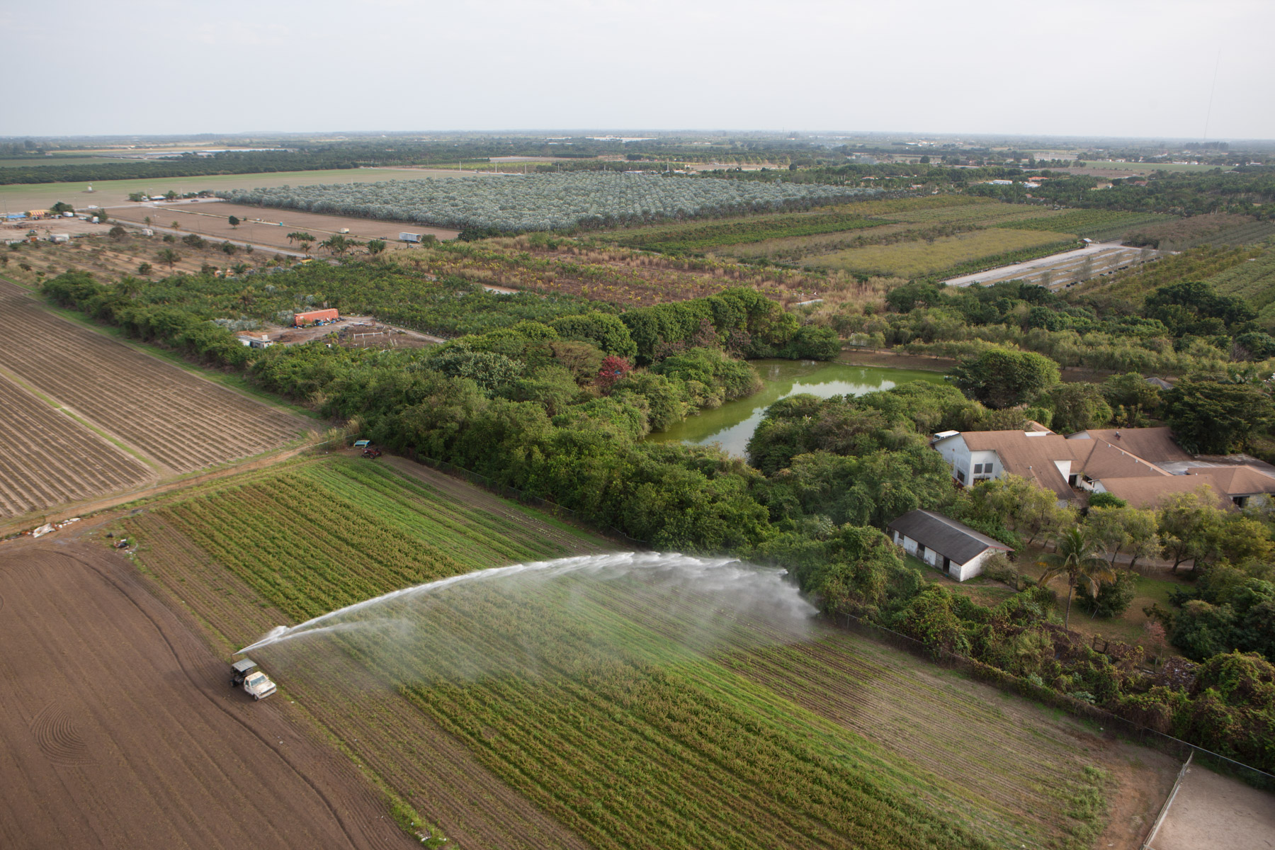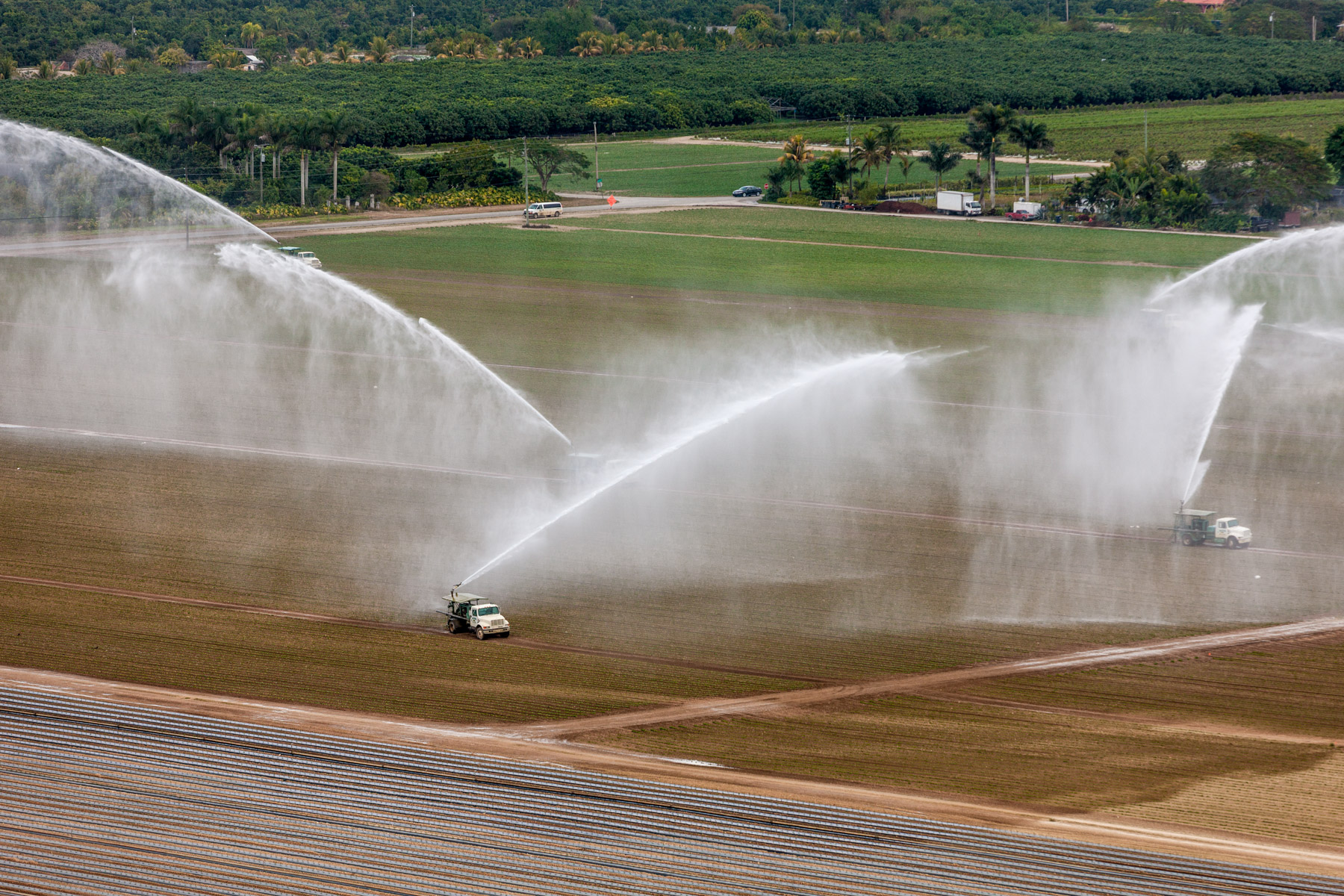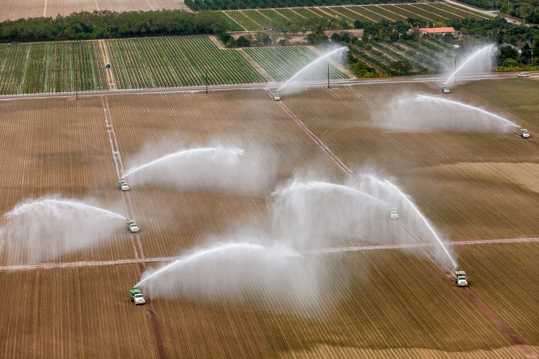 Arrosage agricole près de Country Walk (sud de Miami), Comté de Miami-Dade, Floride, Etats-Unis ( 25°37'31.38"N - 80°27'51.71"O)