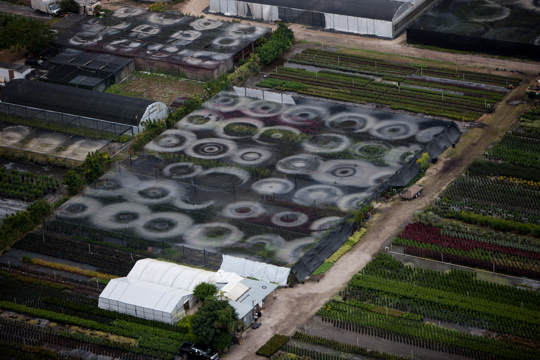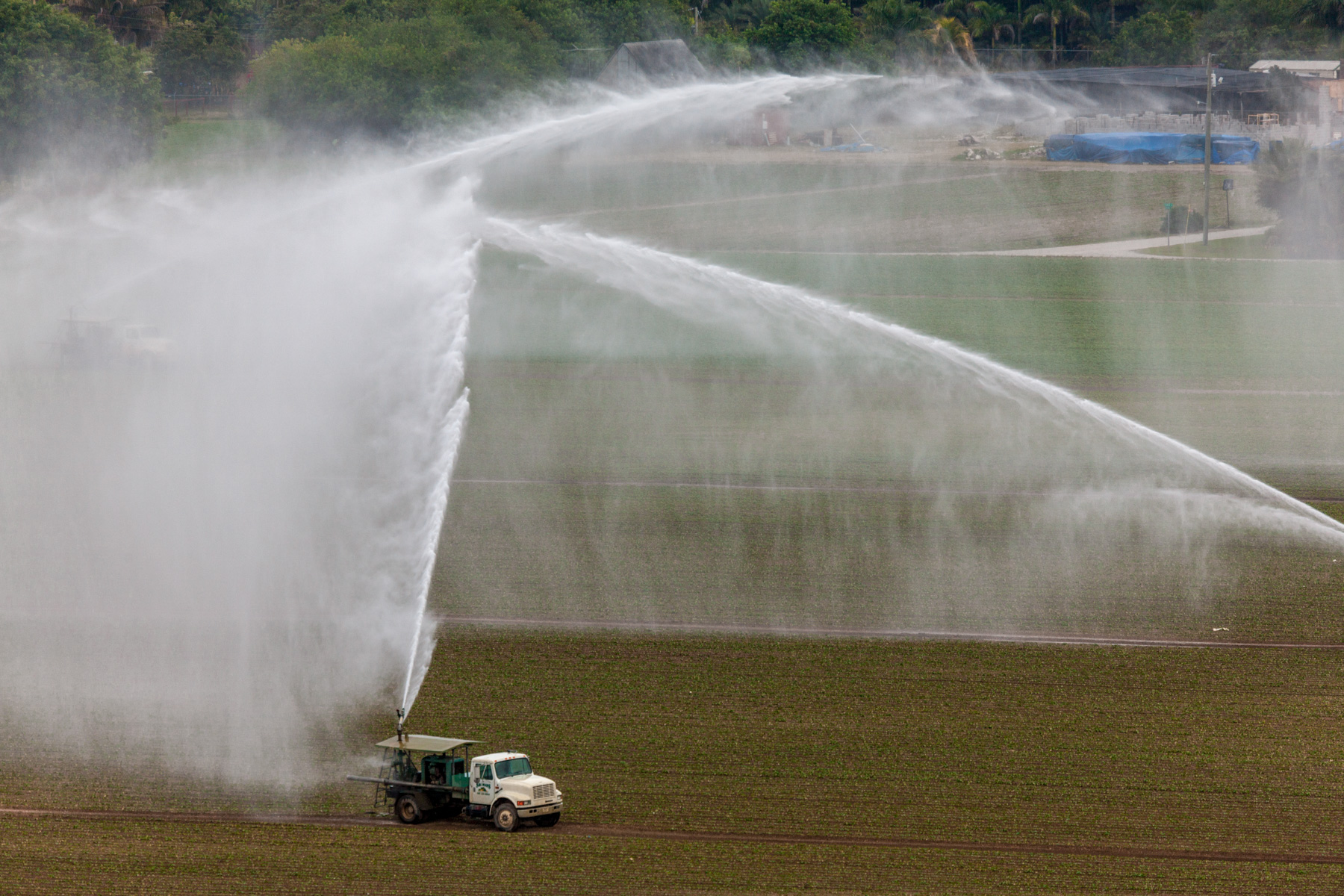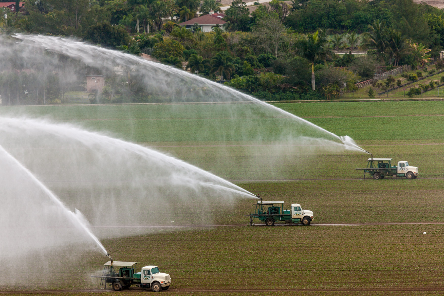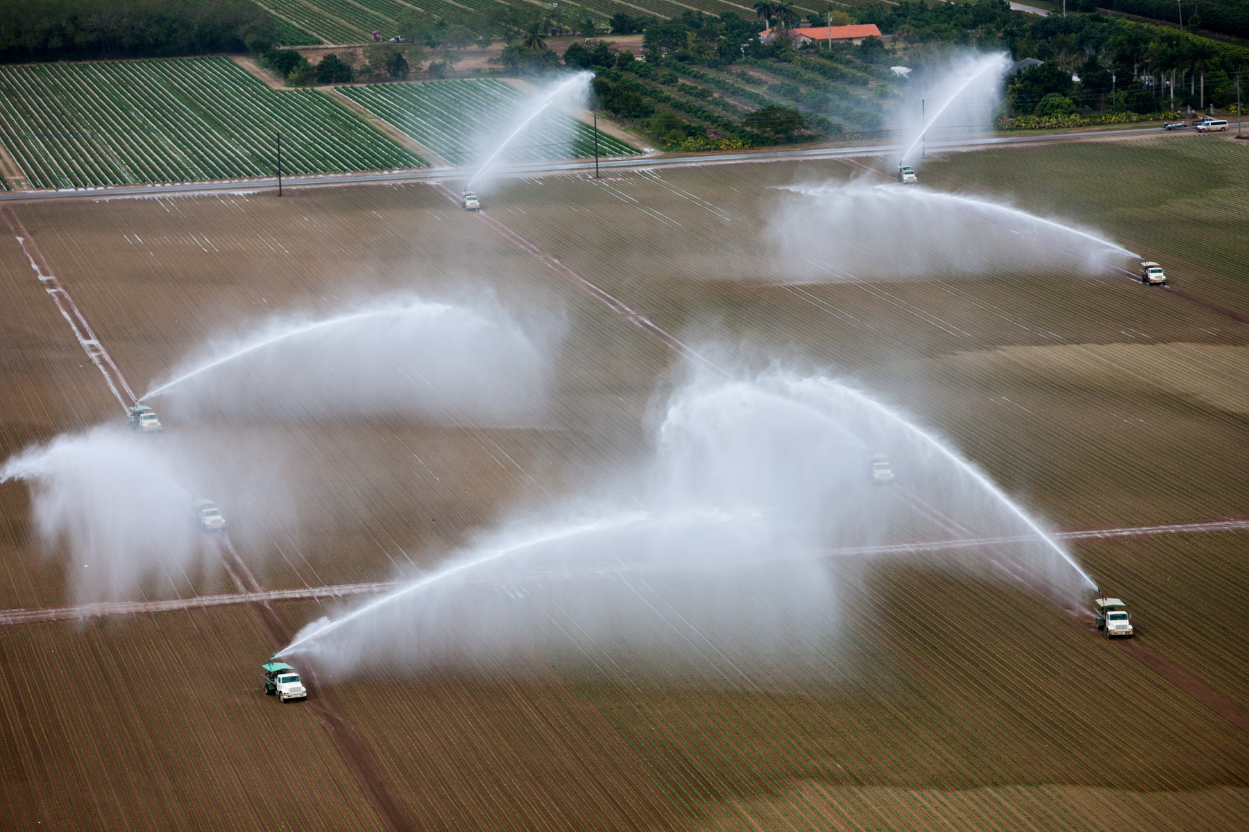 Arrosage agricole près de Country Walk (sud de Miami), Comté de Miami-Dade, Floride, Etats-Unis ( 25°37'31.38"N - 80°27'51.71"O)