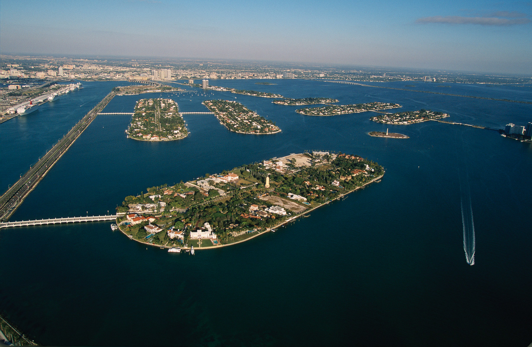 Miami Beach et Miami: Venetian Islands dans Biscayne Bay, Comté de Miami-Dade, Floride, Etats-Unis