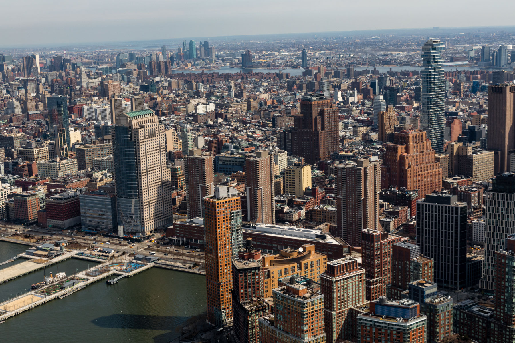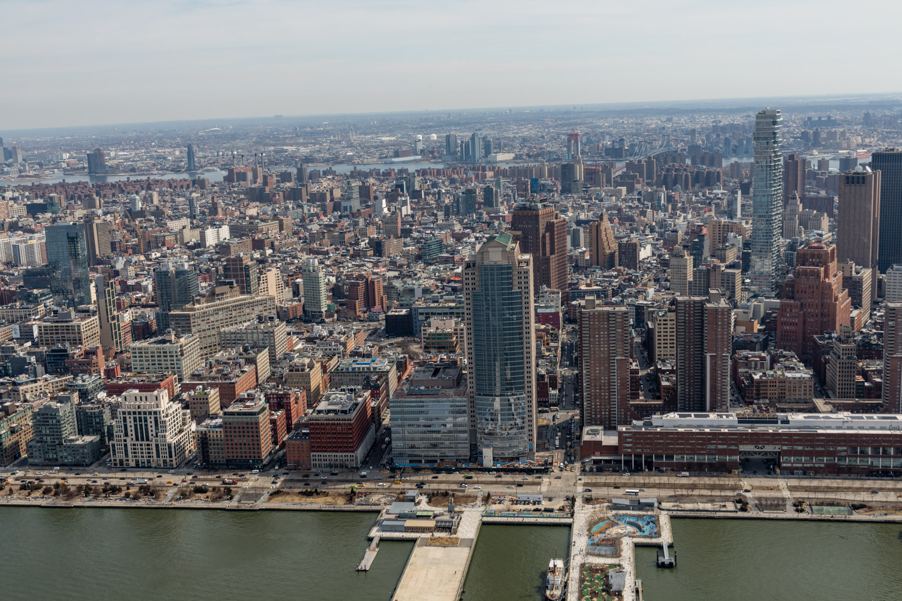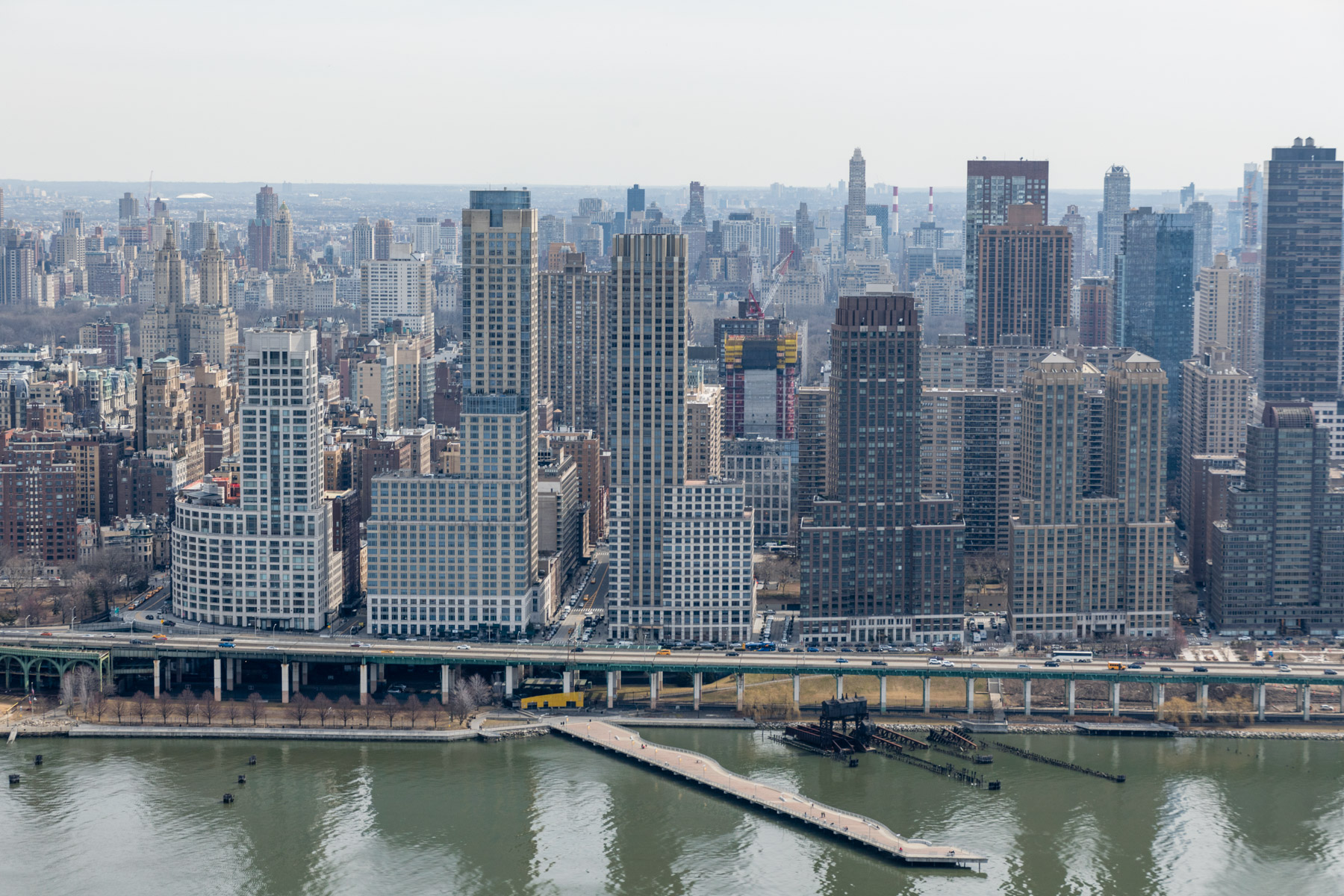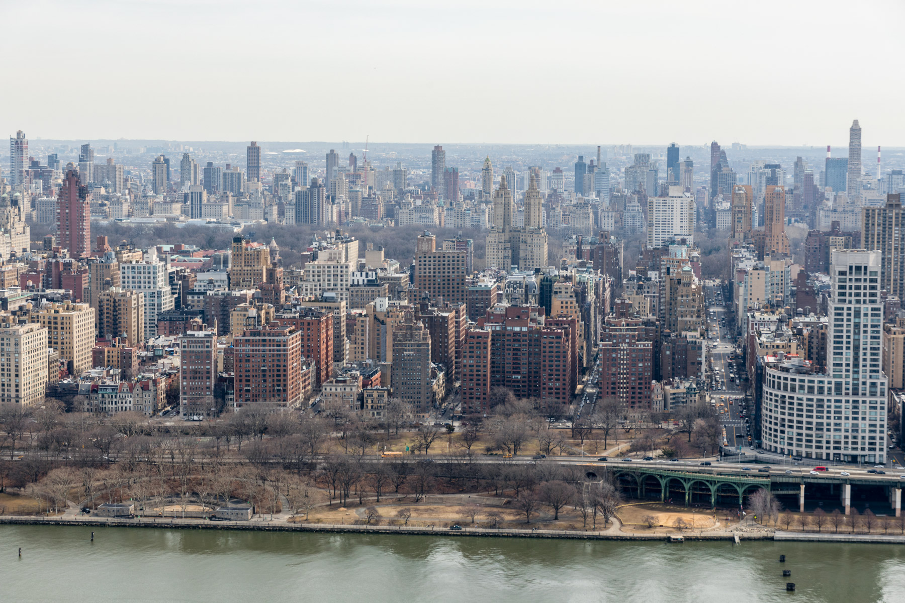 Manhattan as seen from Upper East Side, New York, United States (40°46'14.55" N, 73°56'47.92" W).